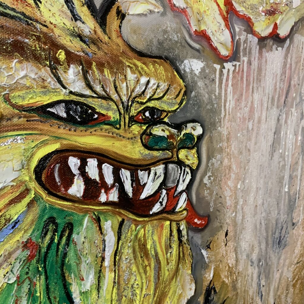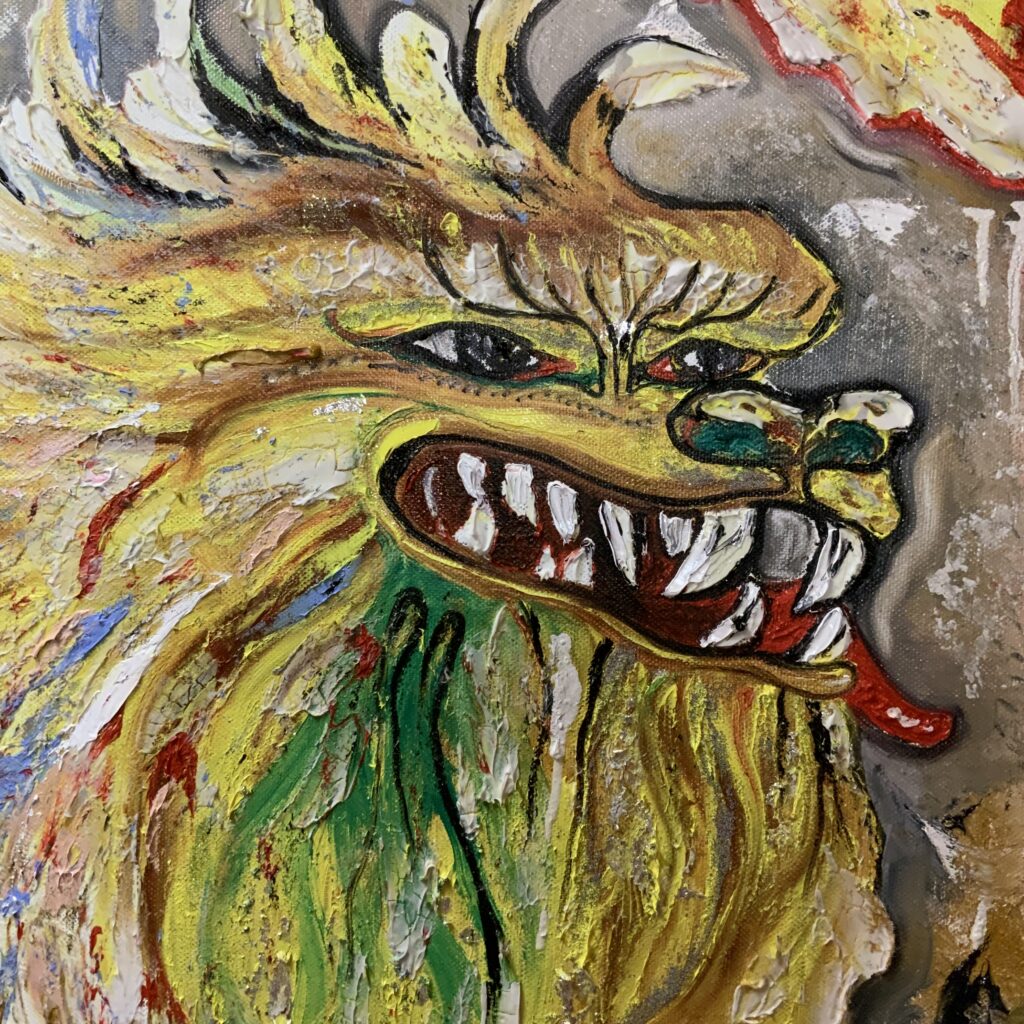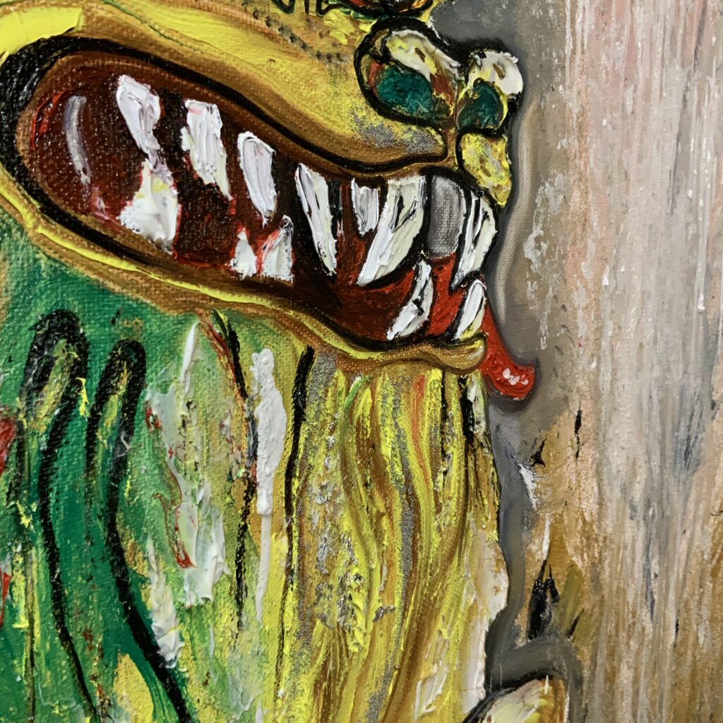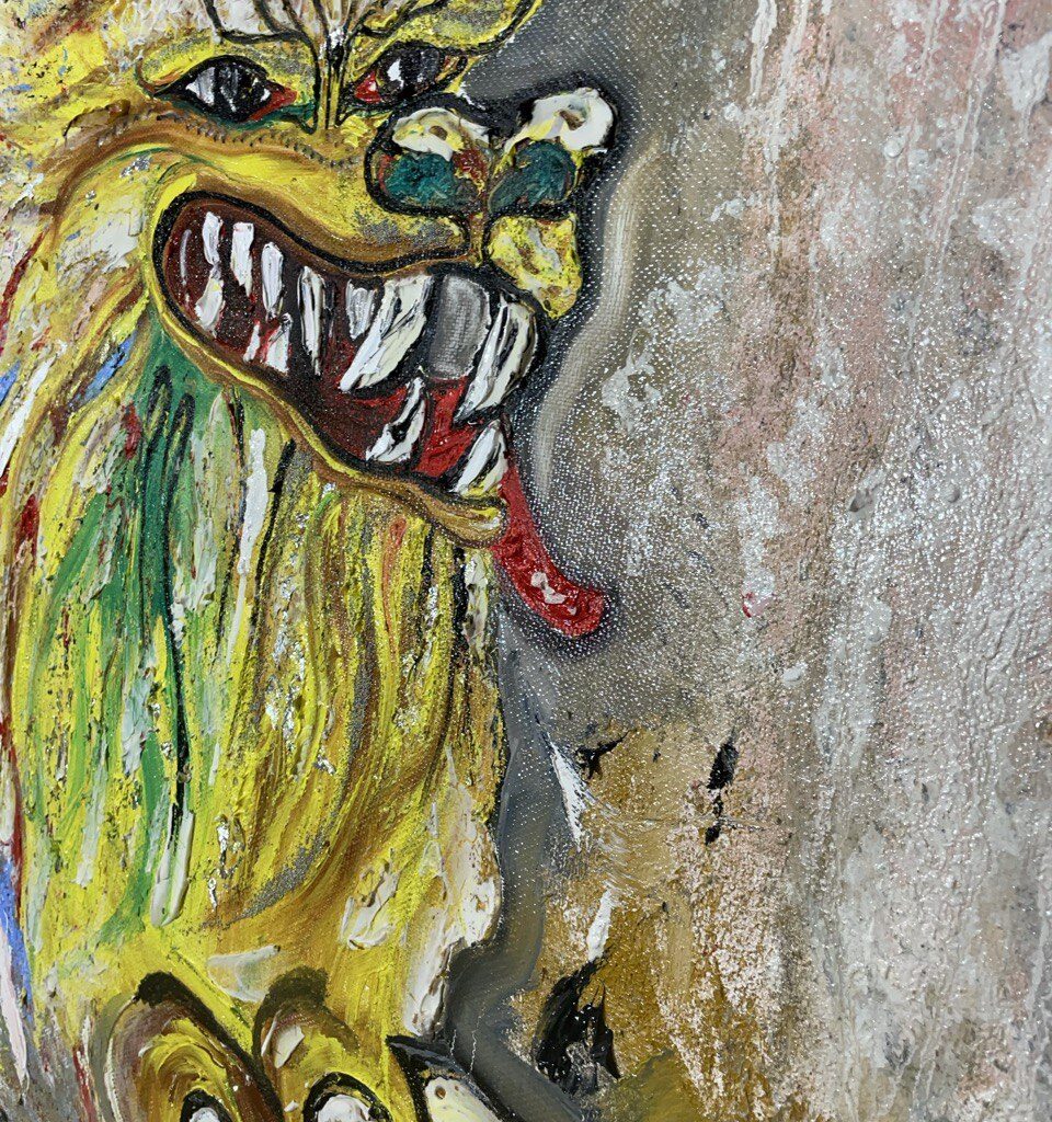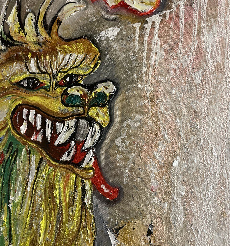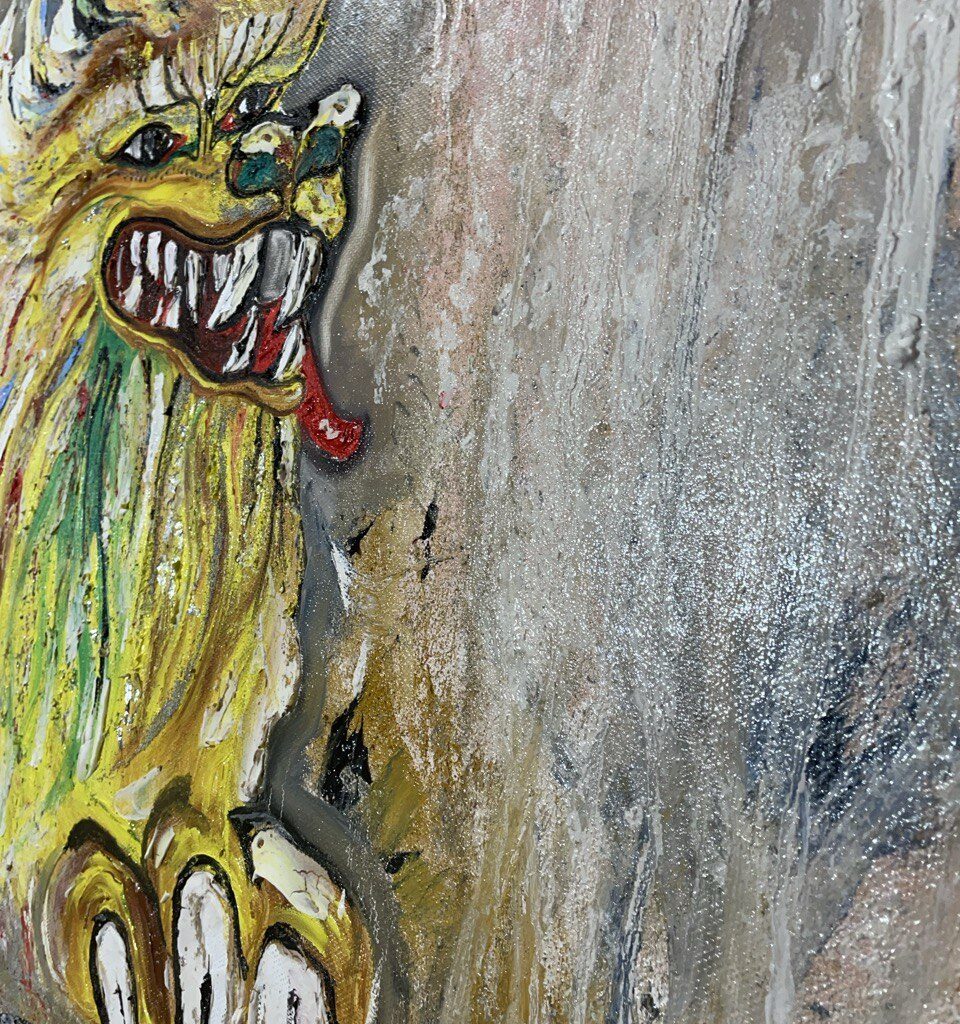 The amulet painting is painted in a street style and is intended for the design of a living room of a private house, an office (it has masculine energy).