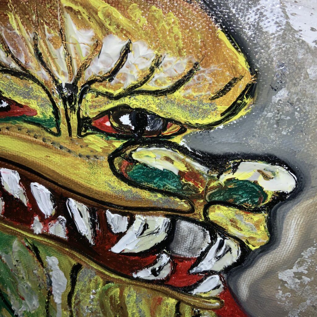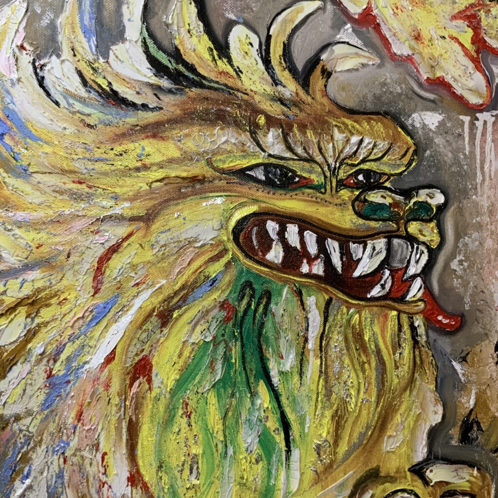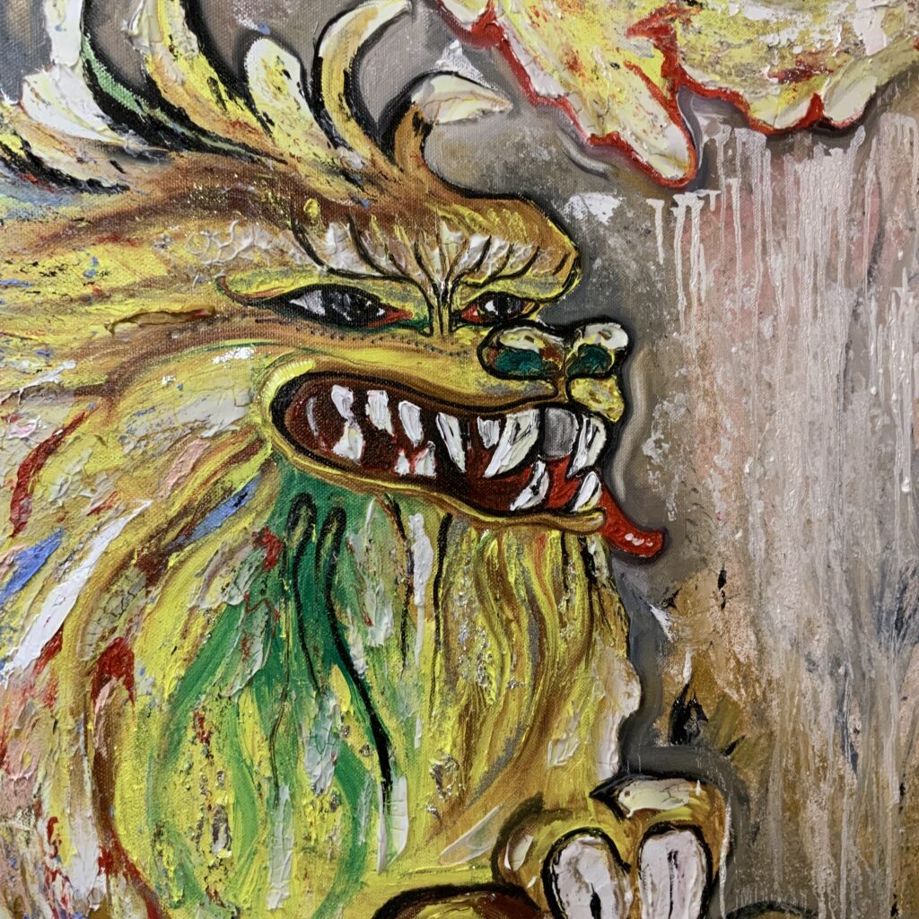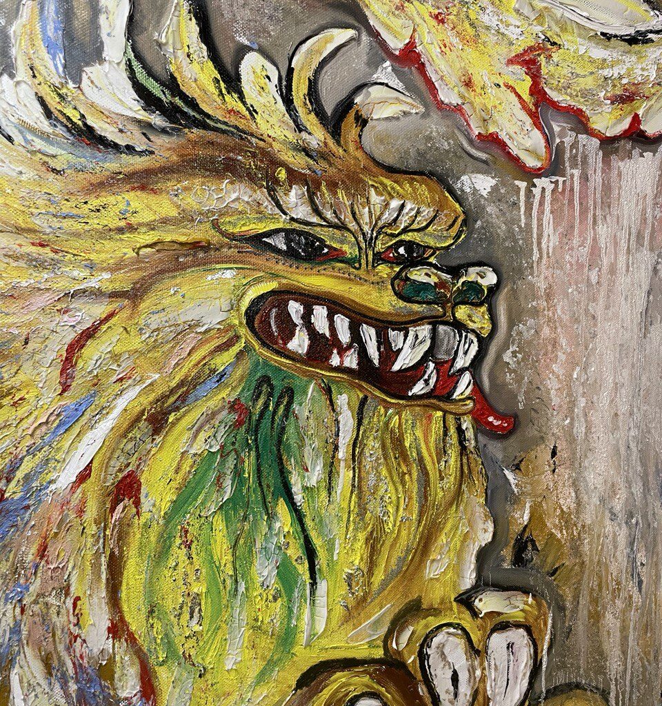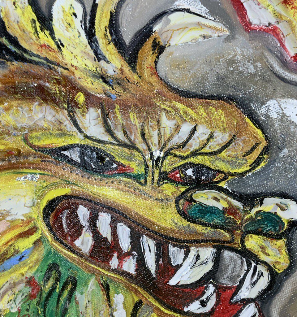 The amulet painting is painted in a street style and is intended for the design of a living room of a private house, an office (it has masculine energy).