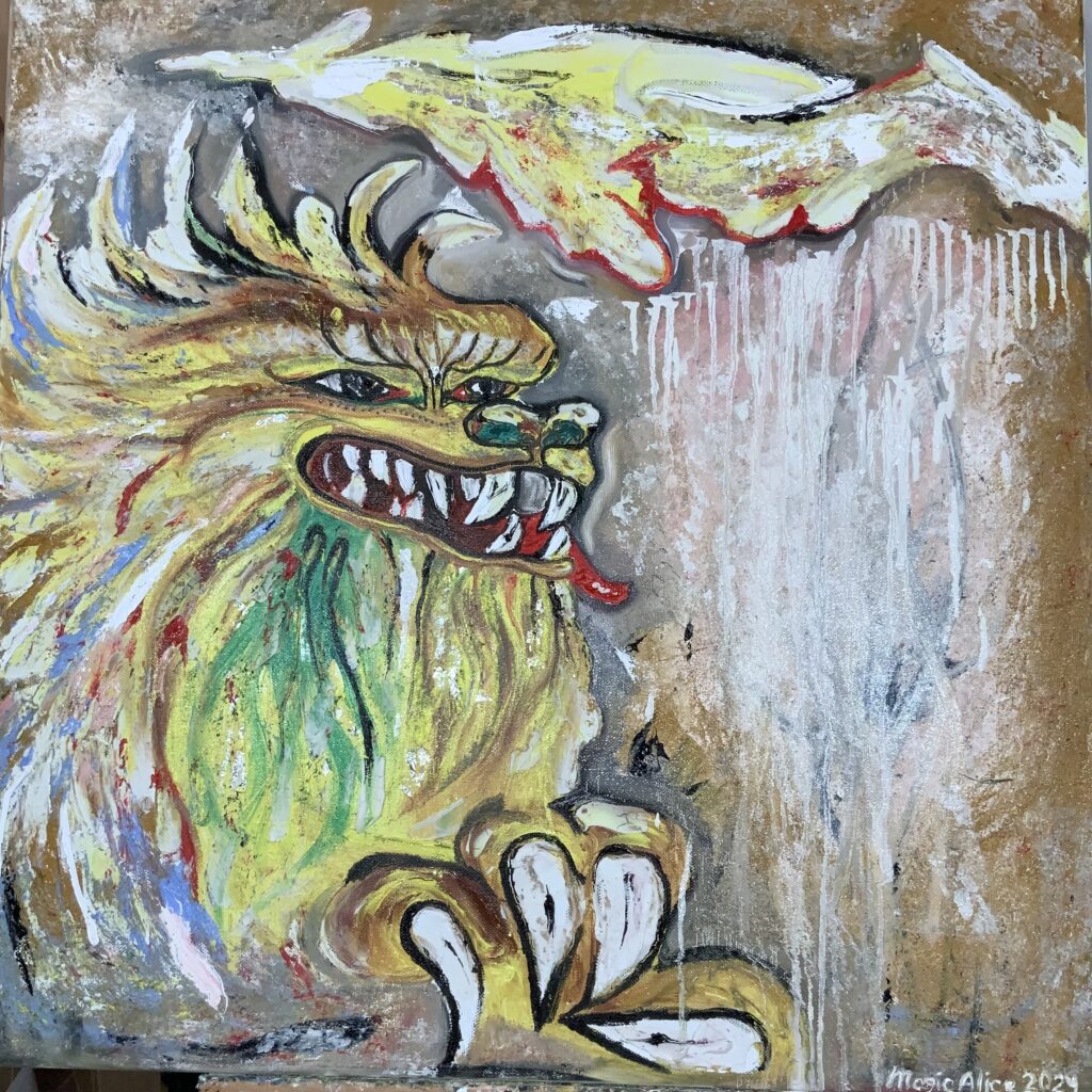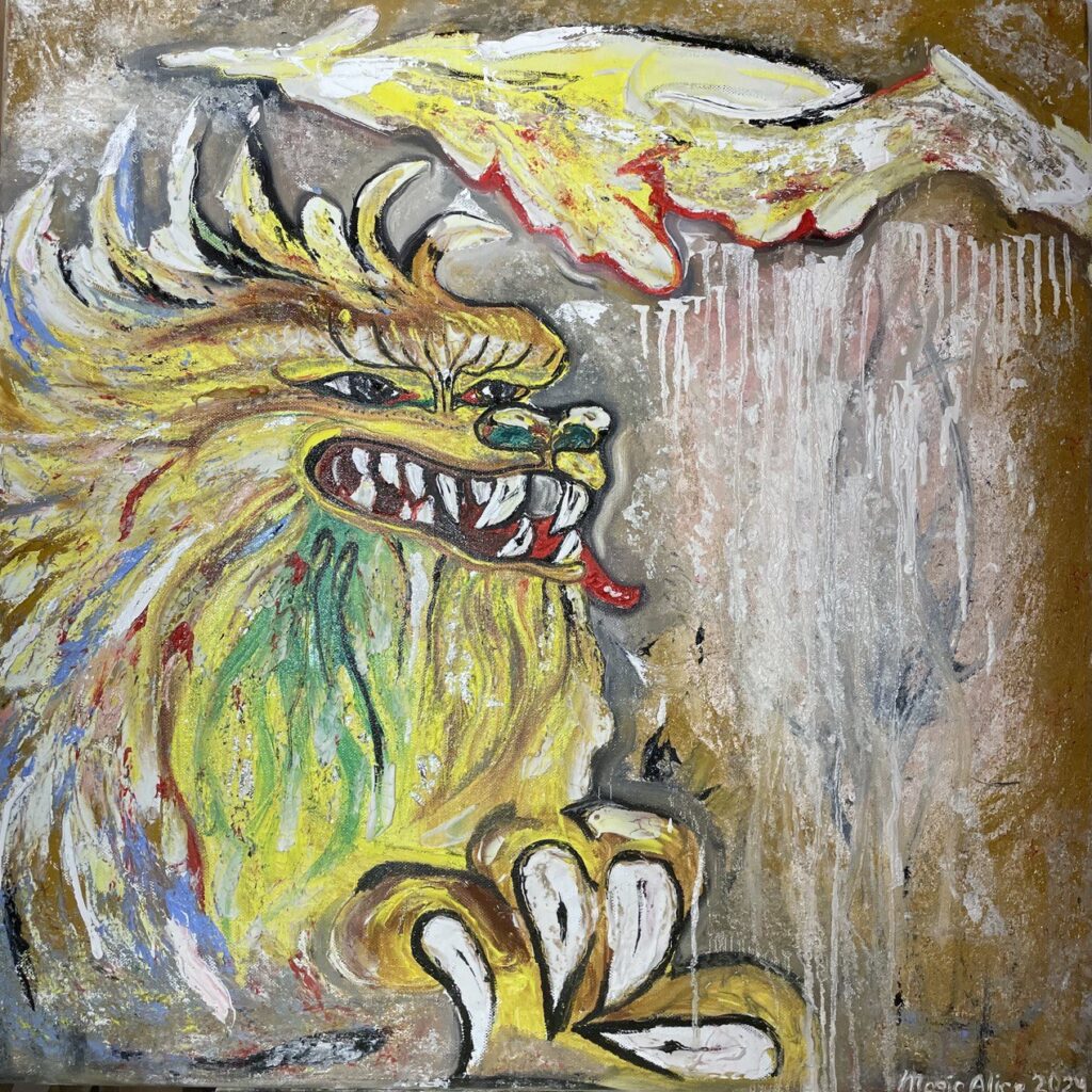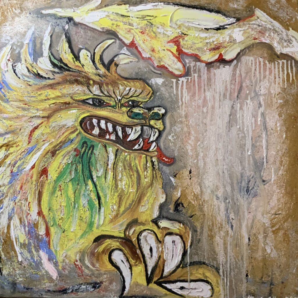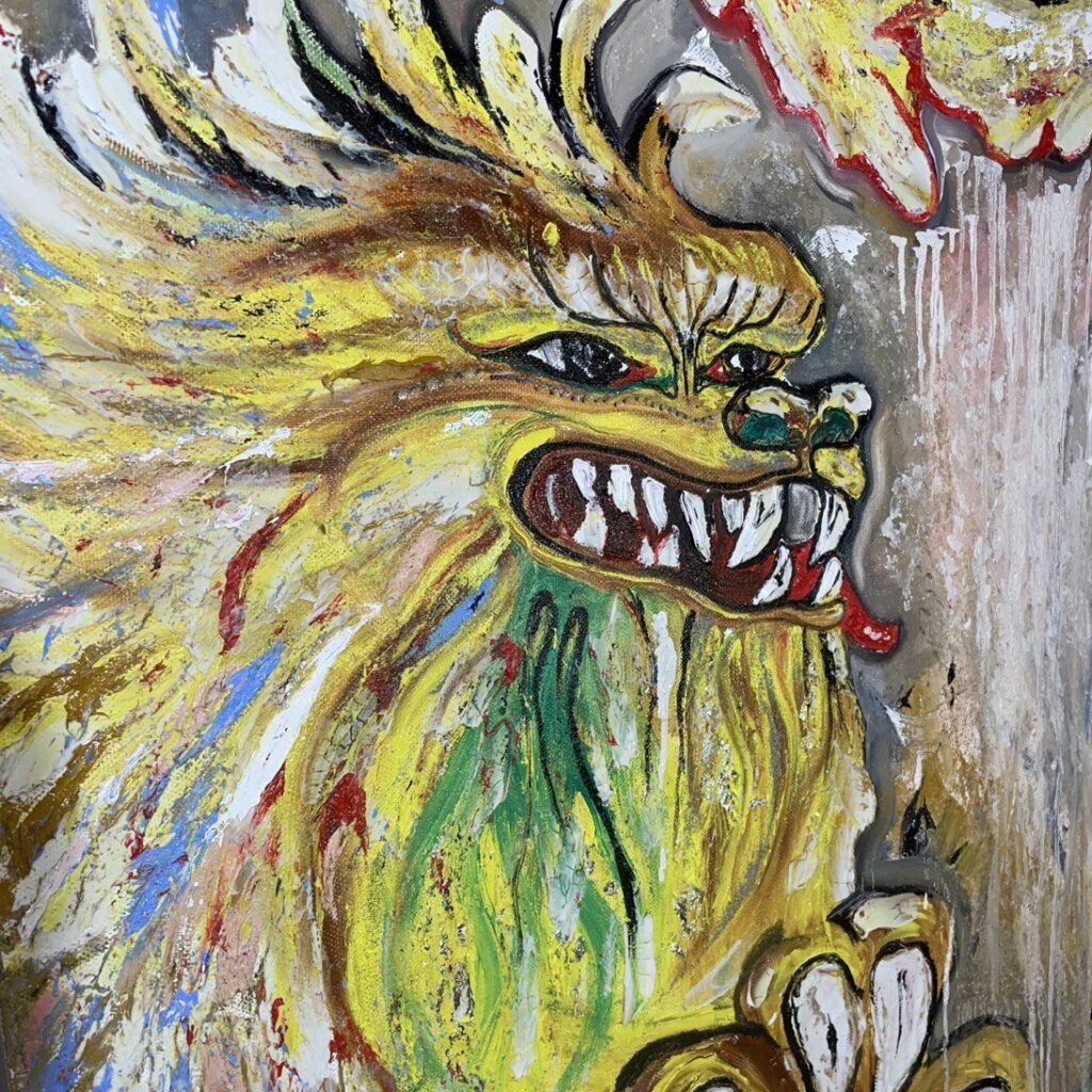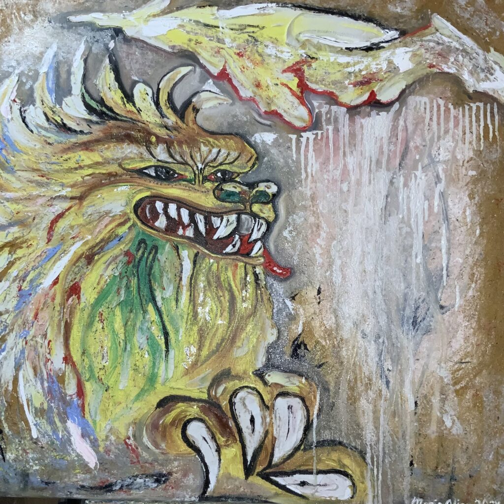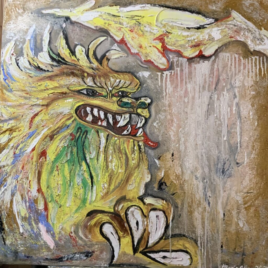 The amulet painting is painted in a street style and is intended for the design of a living room of a private house, an office (it has masculine energy).