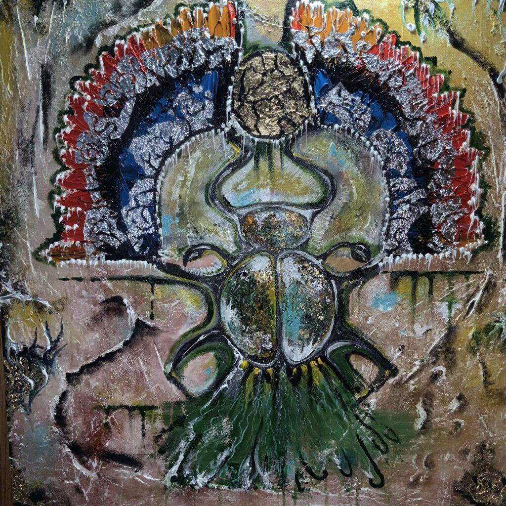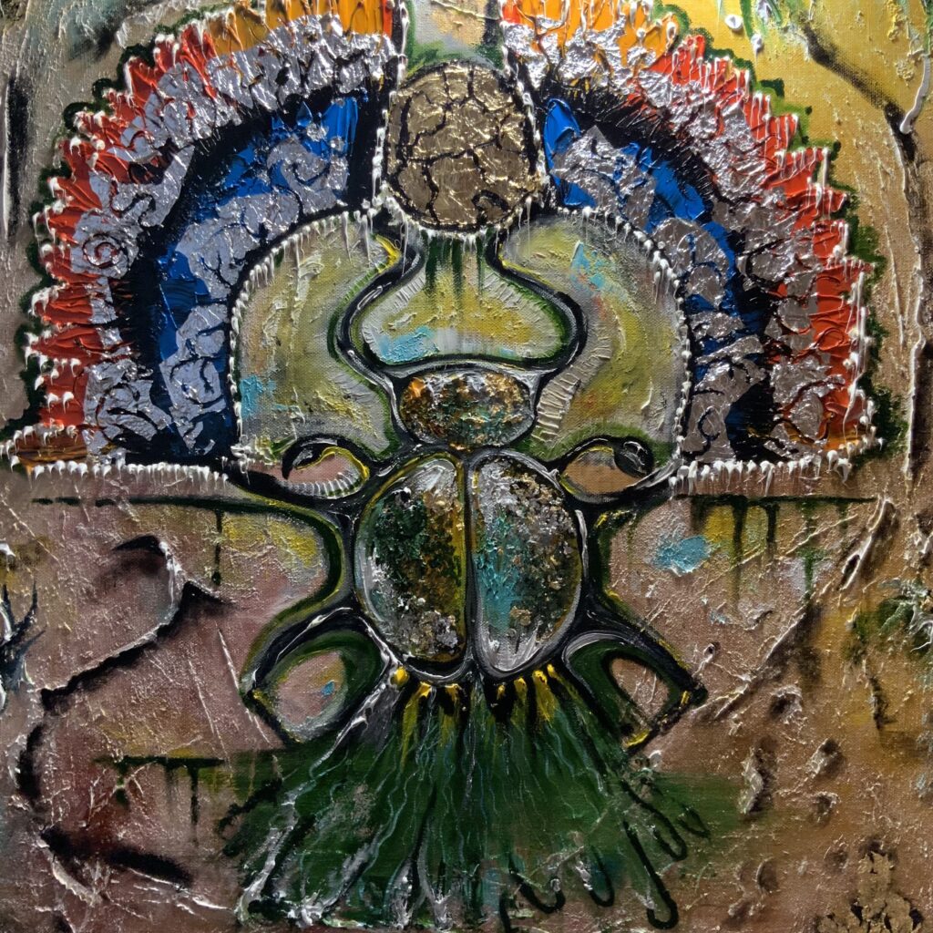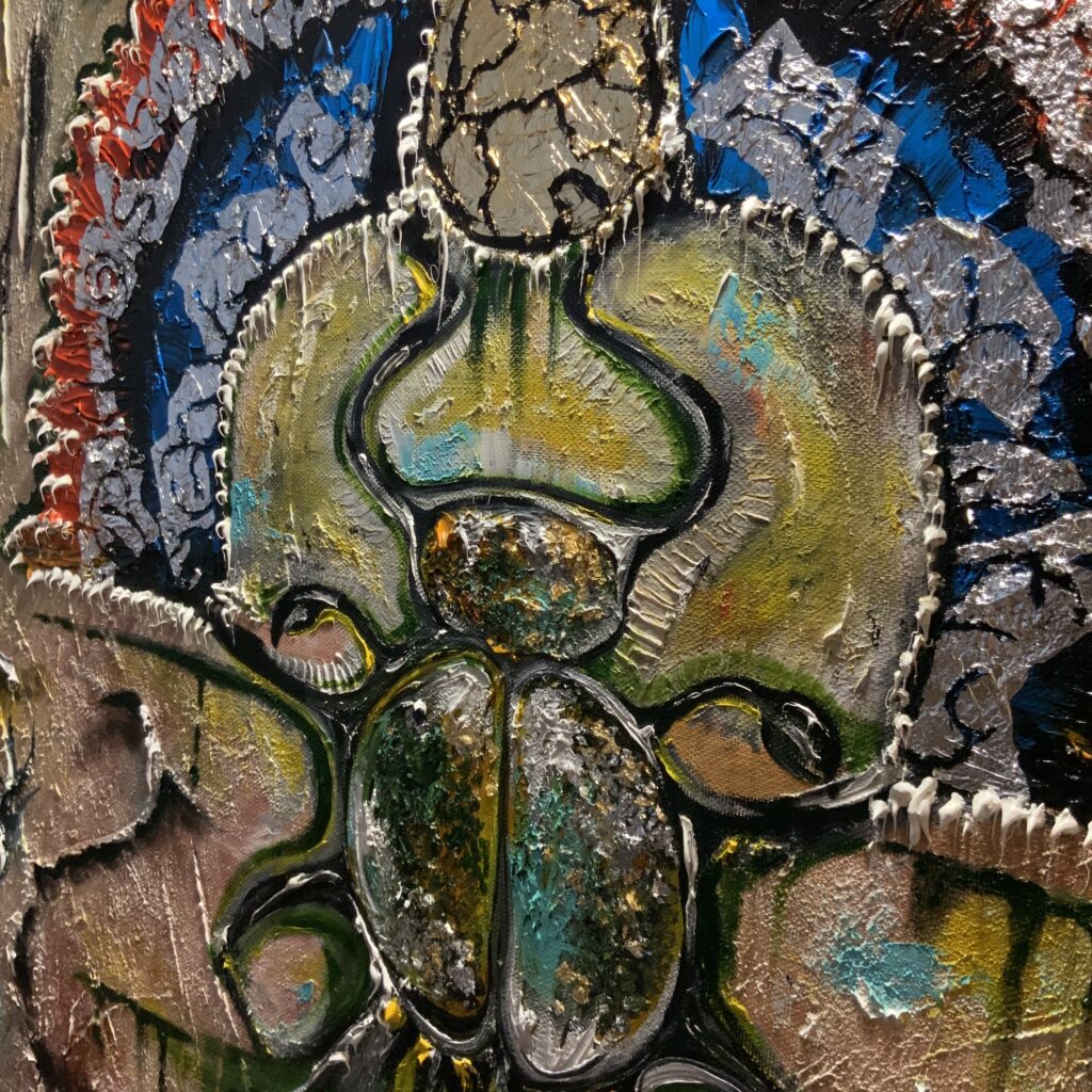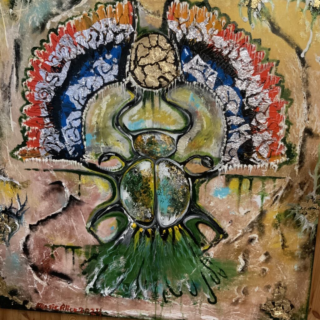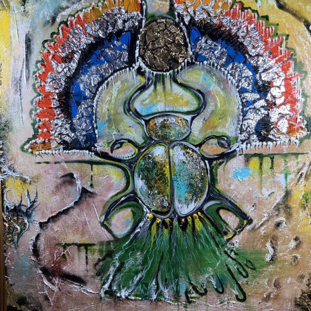 Амулетная выставочная картина написана в островном стиле с имитацией древних египетских красок.