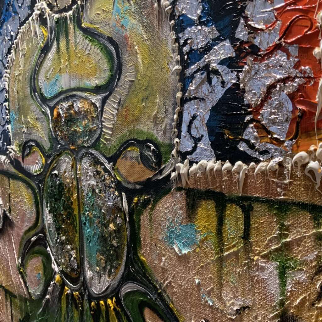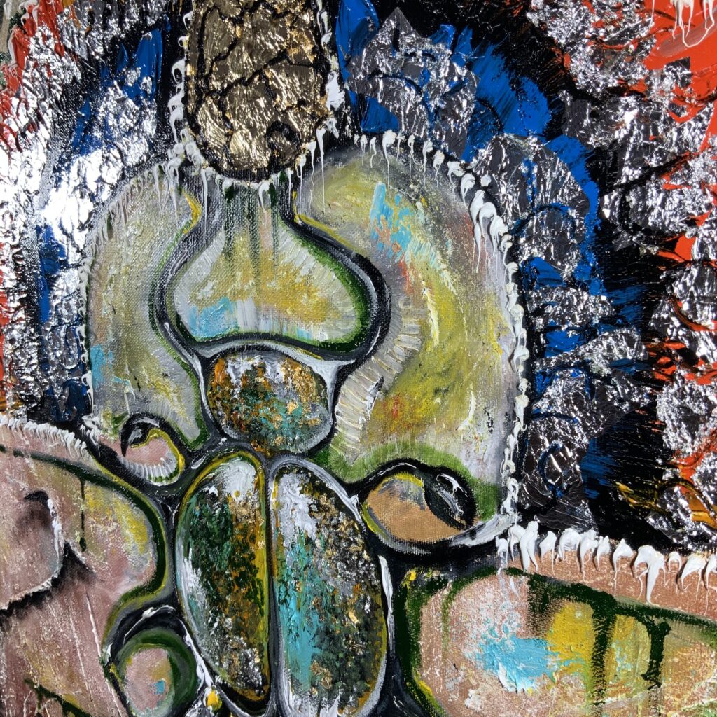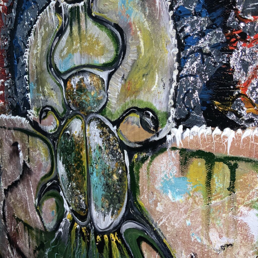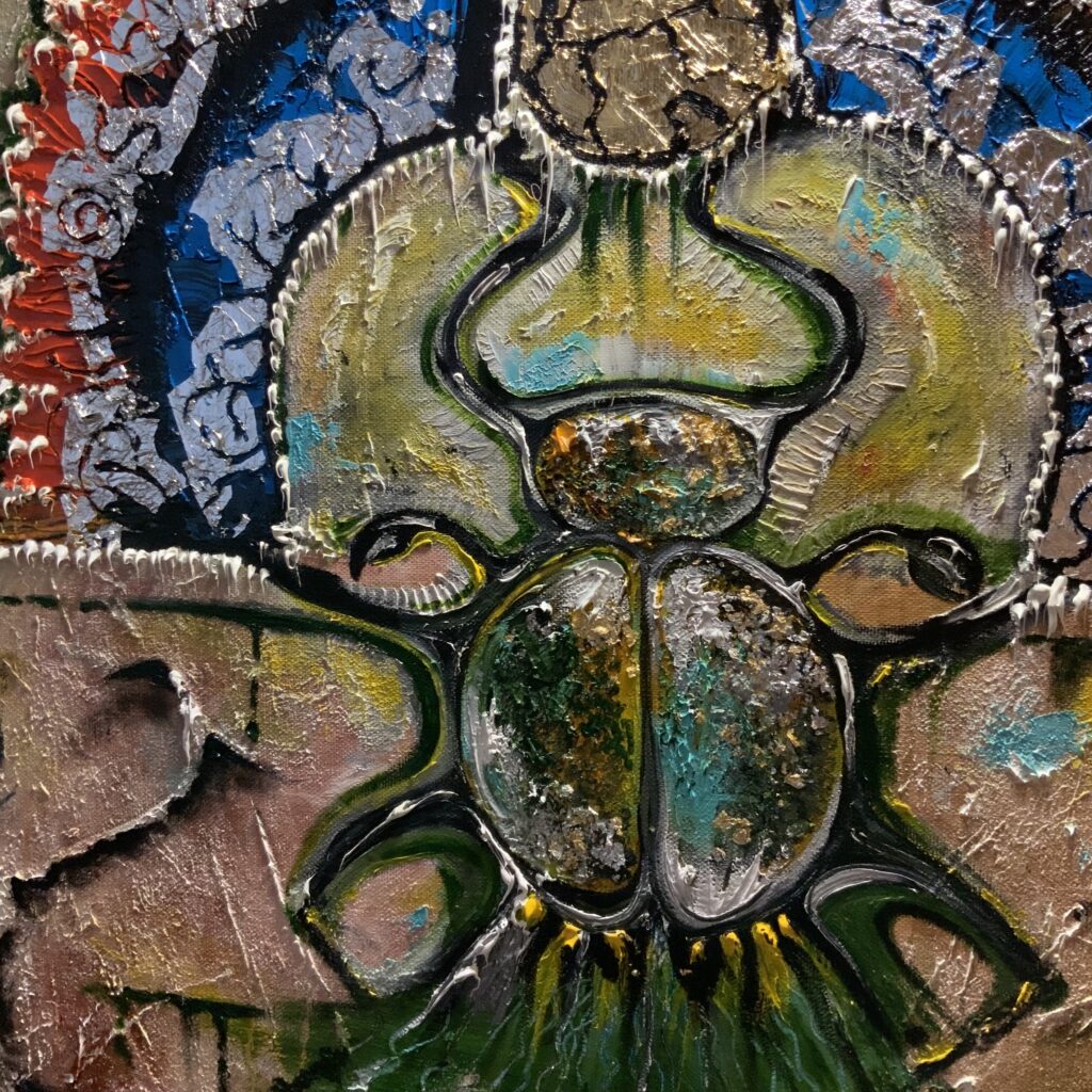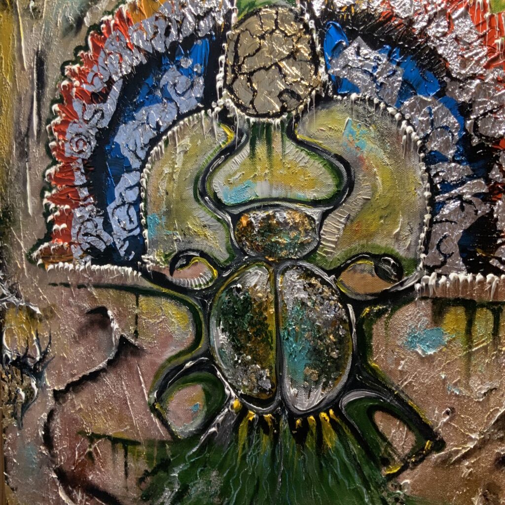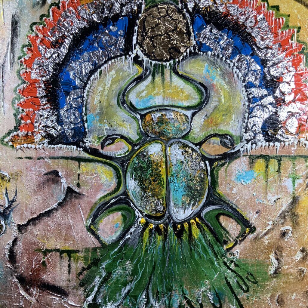 Амулетная выставочная картина написана в островном стиле с имитацией древних египетских красок.