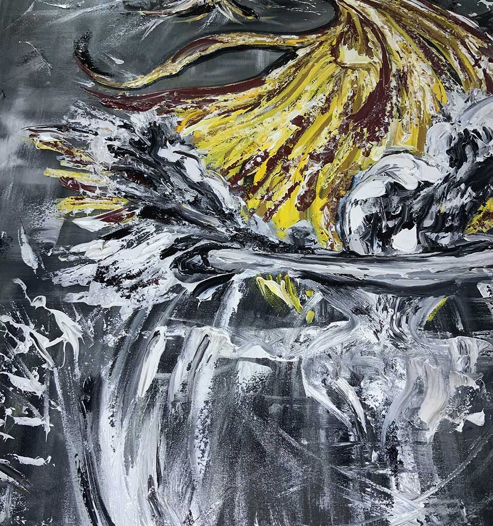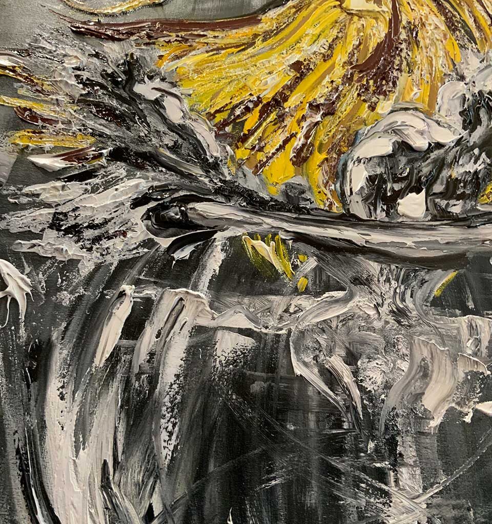 Смешанная техника, объемно - рельефная, интерьерная, яркий белый световой, желтый