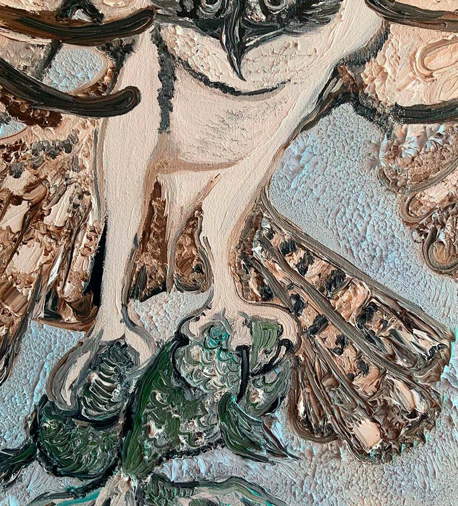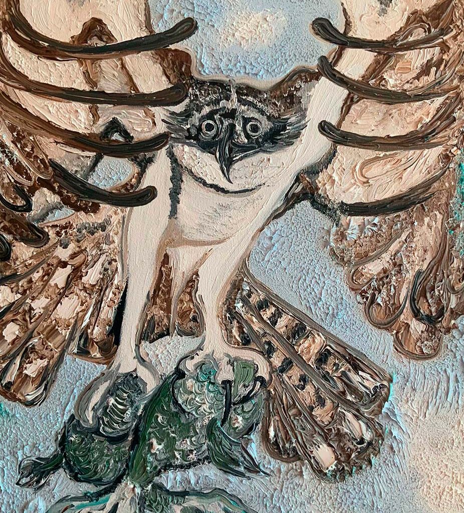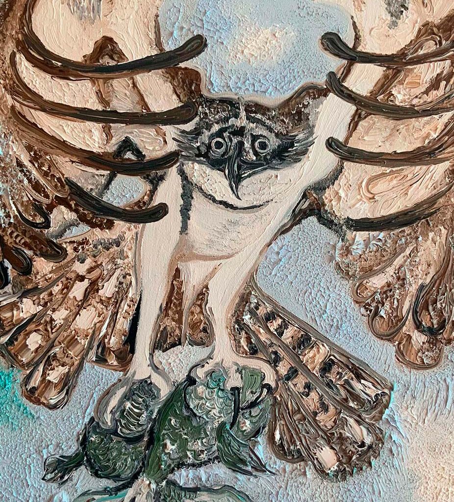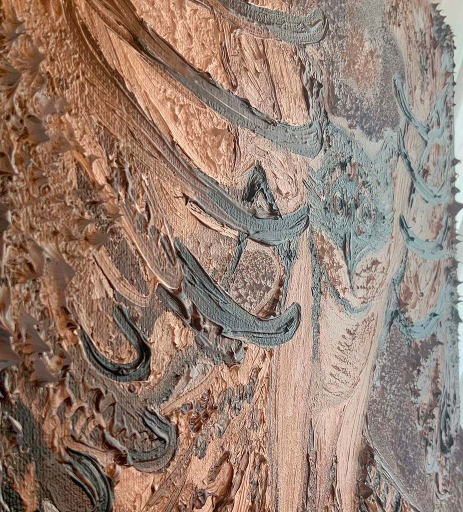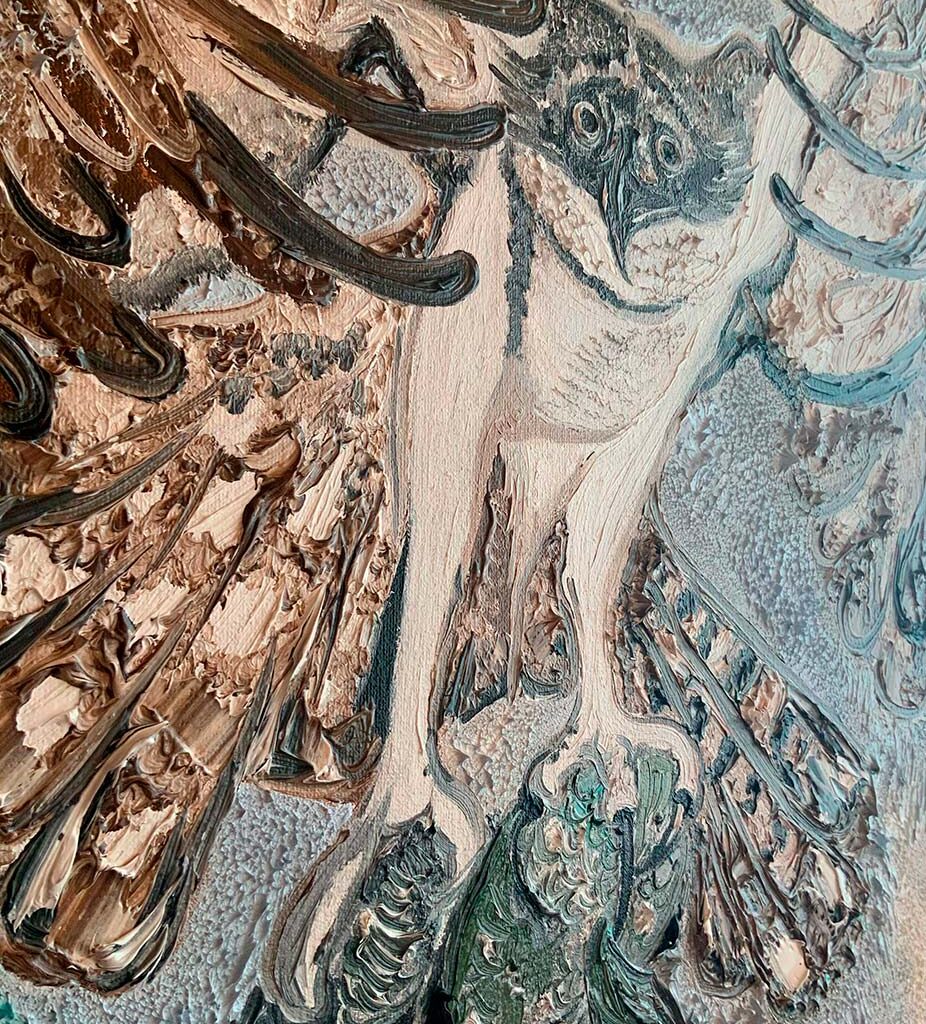 Переливается из нежно голубоватых матовых оттенков в бежевые тона, имеет настроение.
