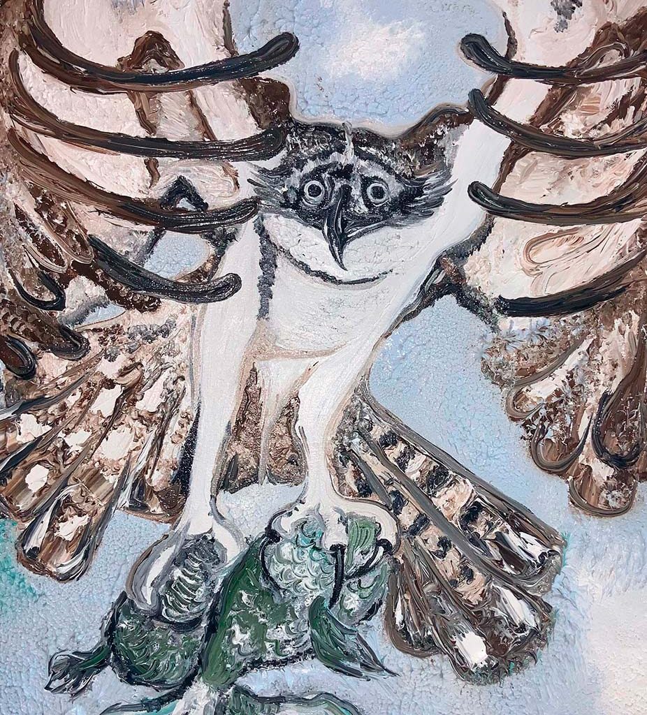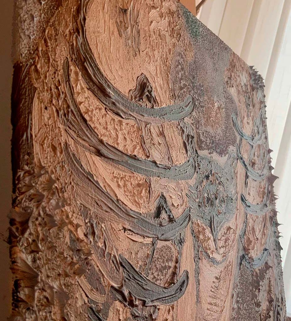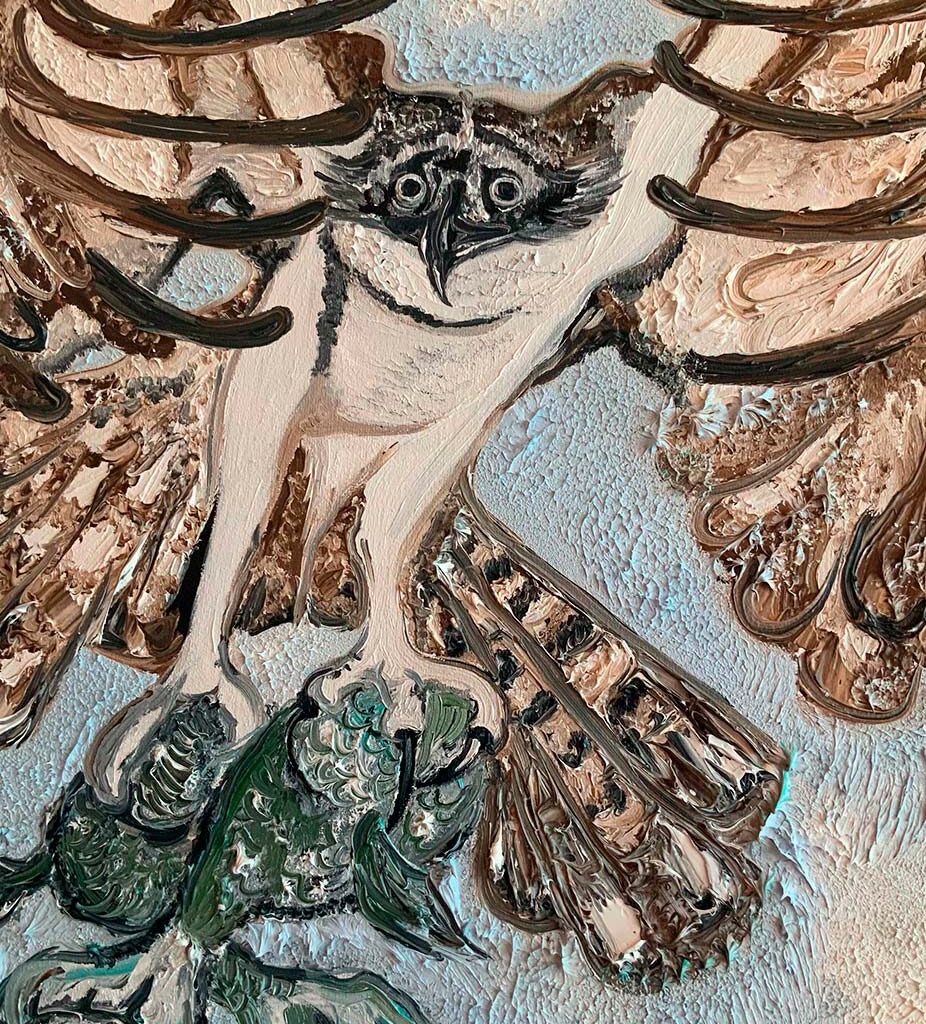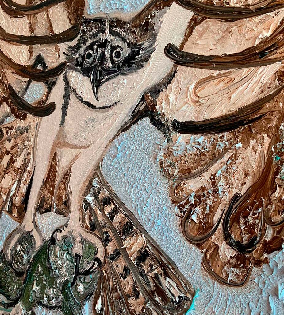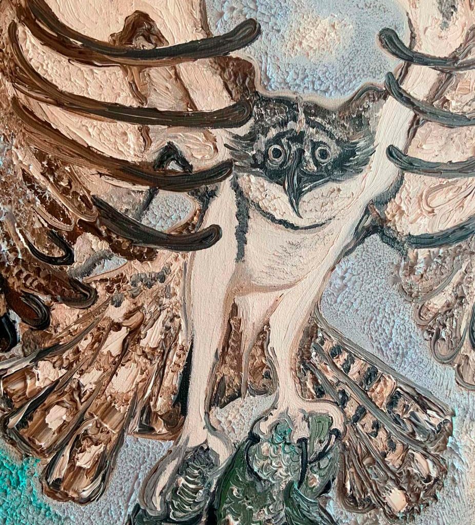 Переливается из нежно голубоватых матовых оттенков в бежевые тона, имеет настроение.