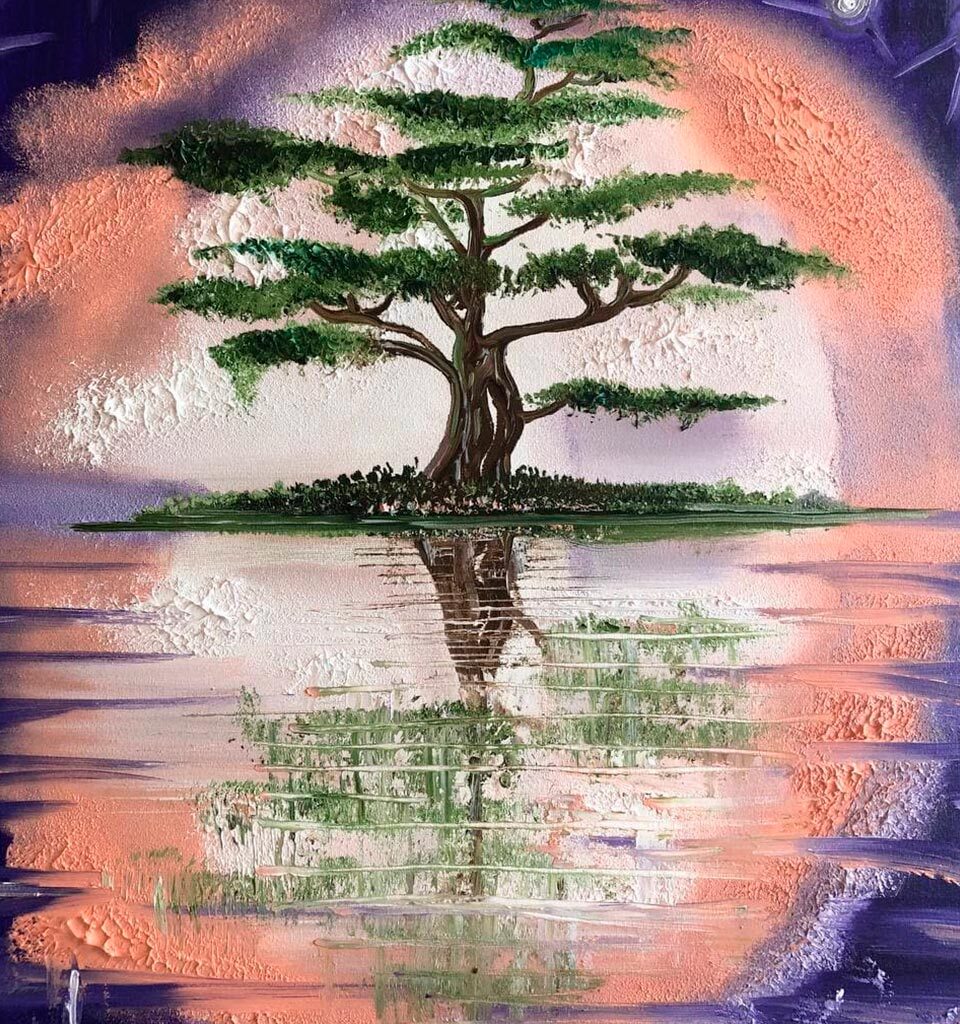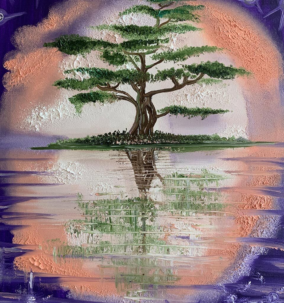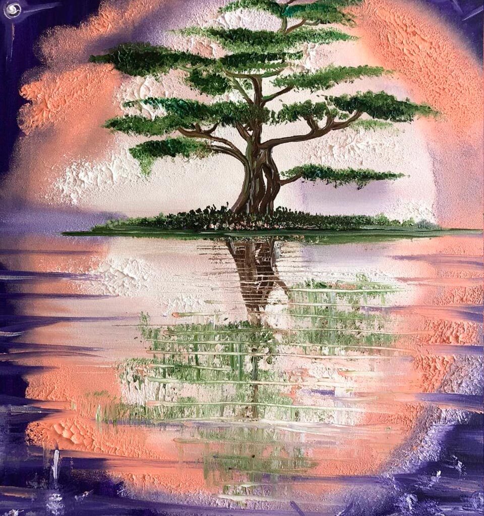 Масло. Меняет цвета в зависимости от освещения «живая»