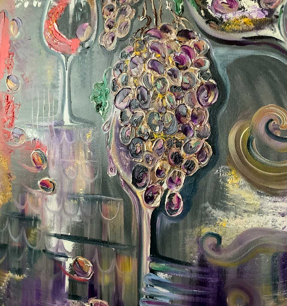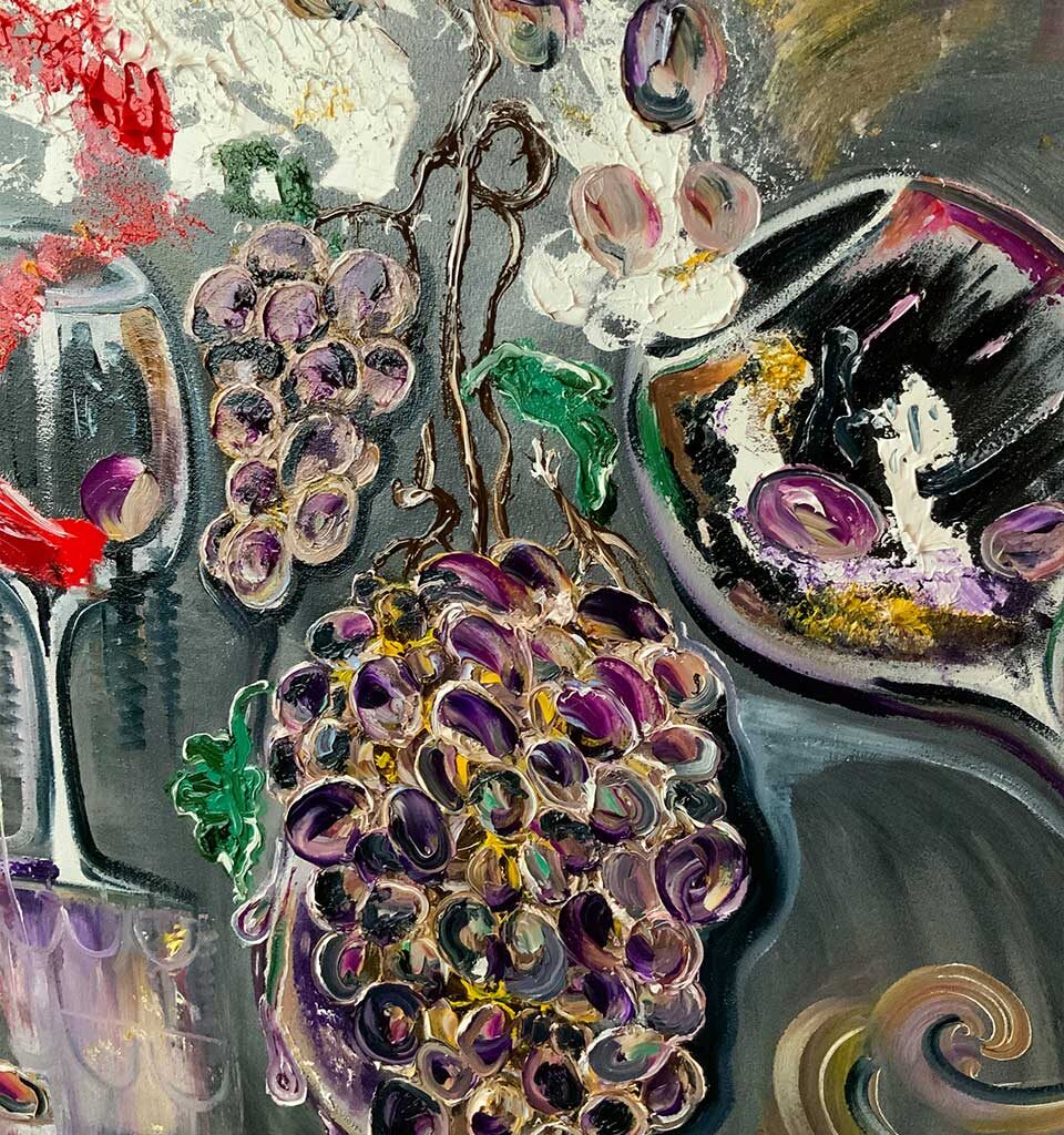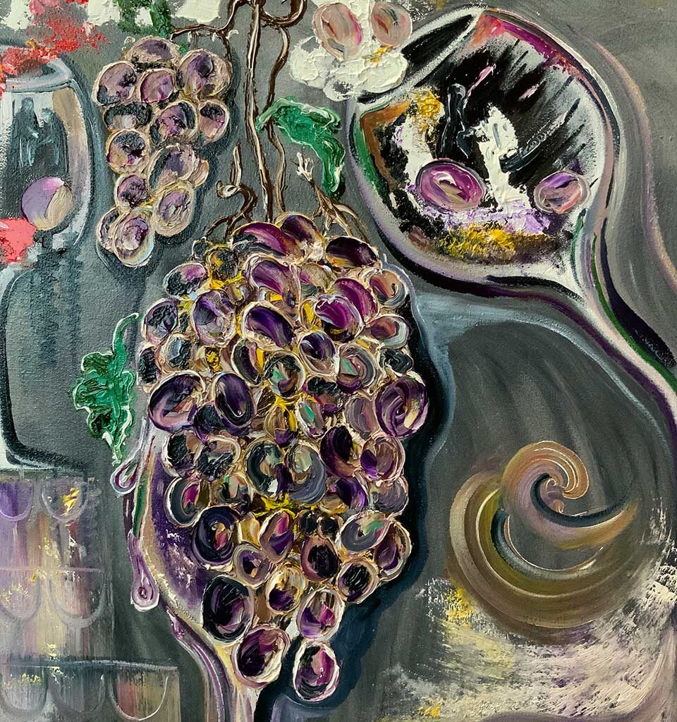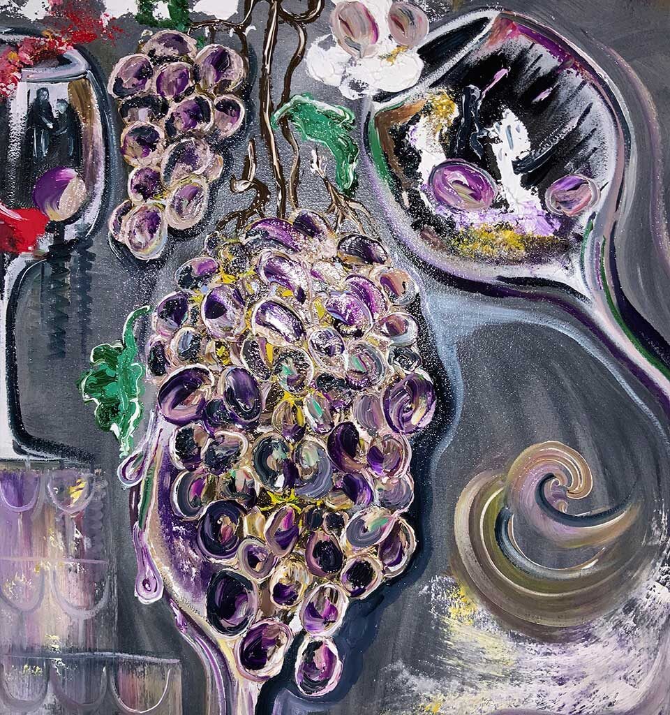 С разных углов кажется что виноград в бокале смещается или поворачивается.