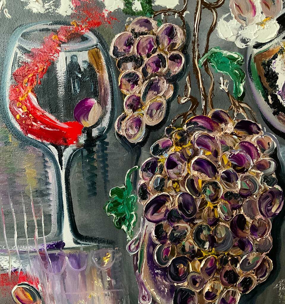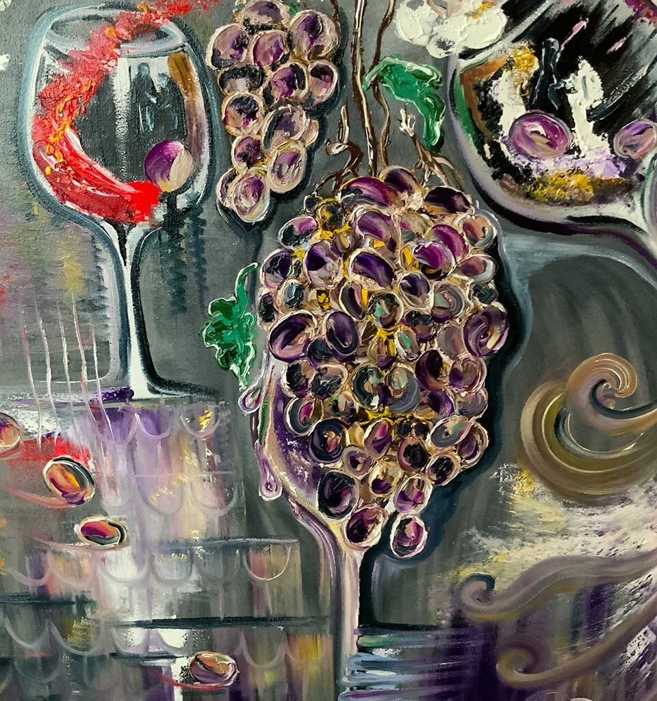 Предполагается для дизайна ресторана, кафе в светлых цветовых гаммах, винного погреба или винодельни, кабинета руководителя винного производства (имеет энергетику изобилия и силы обладания ценностью).