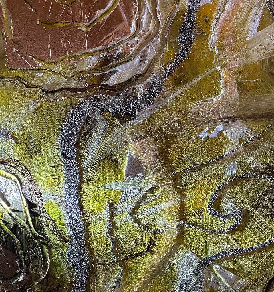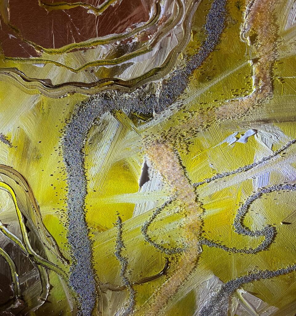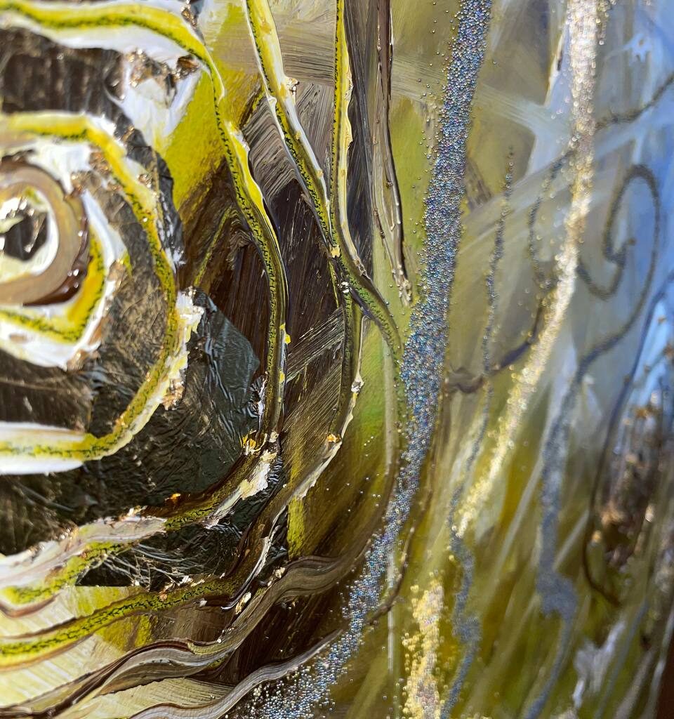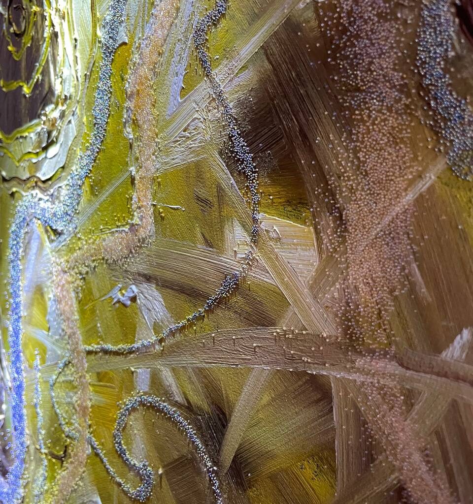При отсутствии прямого света на картине - не видна груша, а при прямом свете - светится неоновый контур необычной груши.