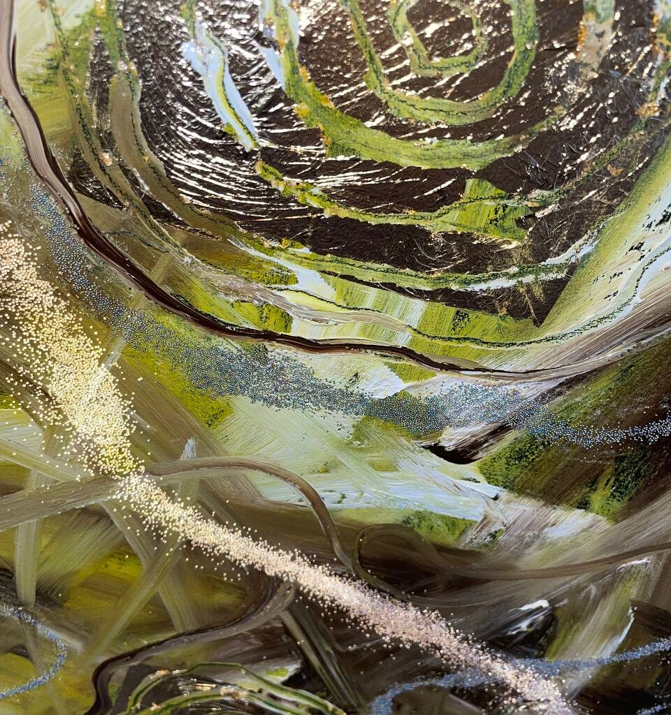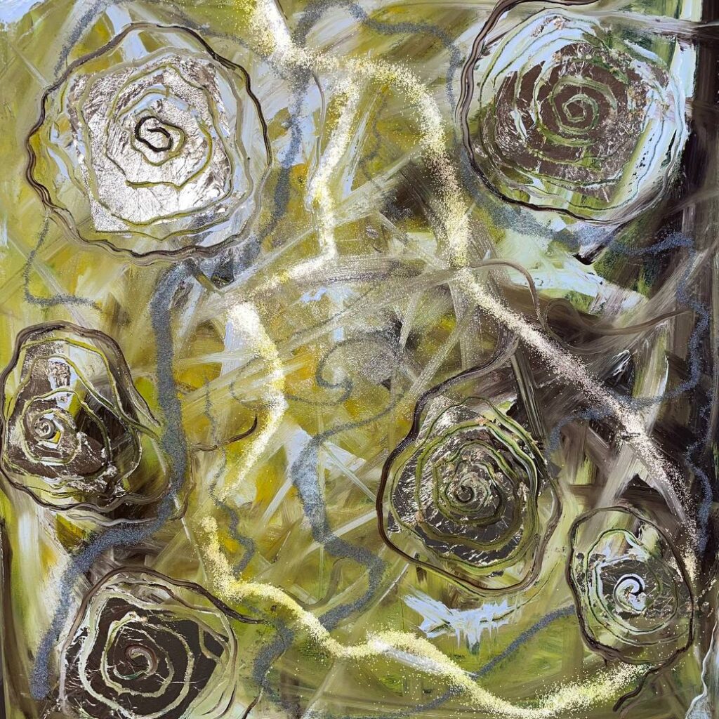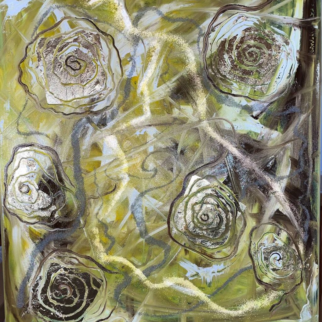 При отсутствии прямого света на картине - не видна груша, а при прямом свете - светится неоновый контур необычной груши.