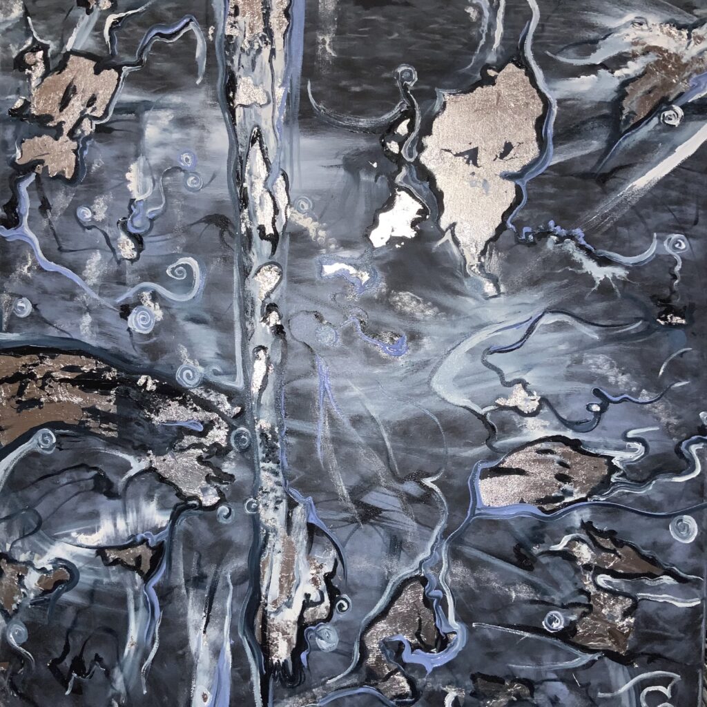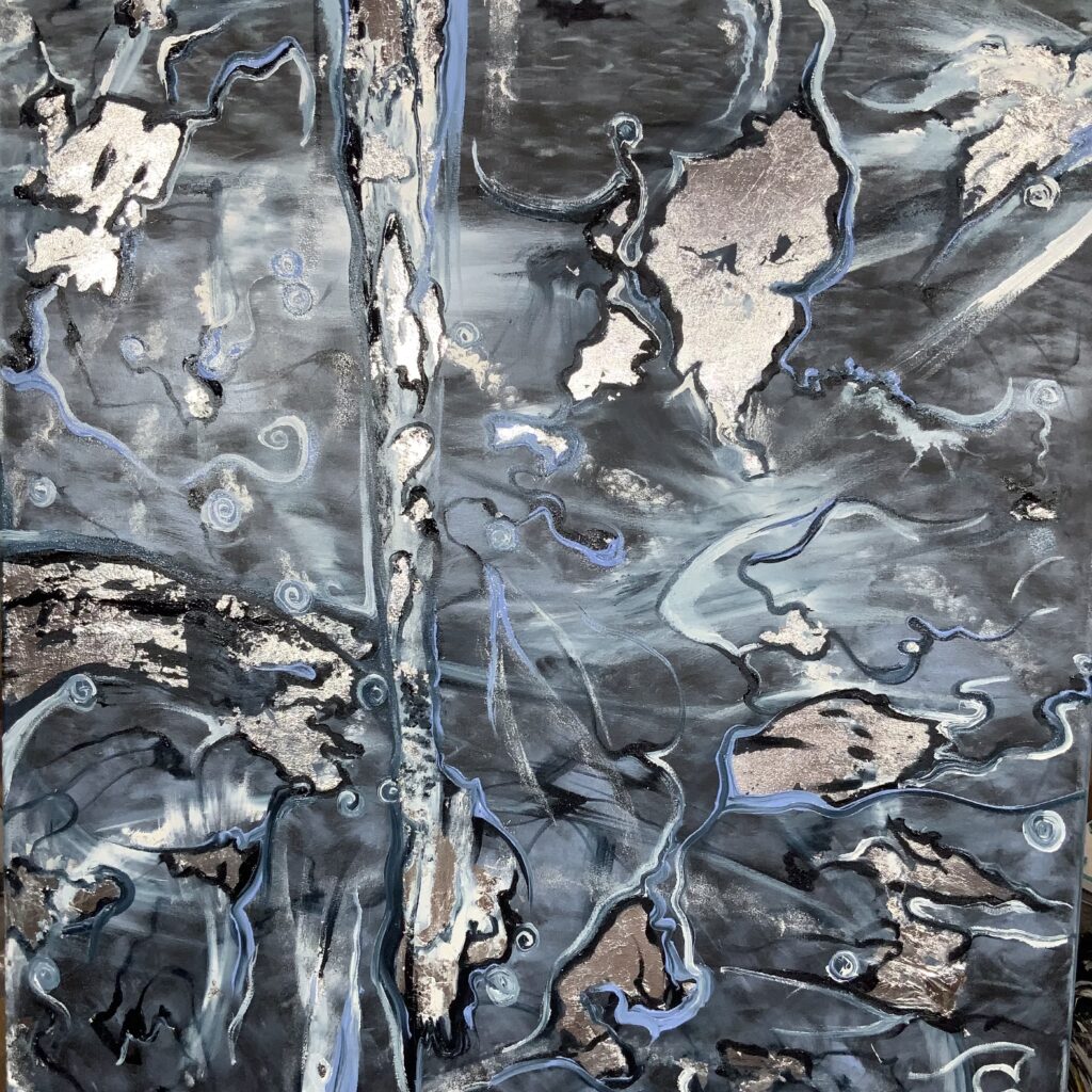 Дизайнерская Арт работа с матовым фоном и блеском серебра.