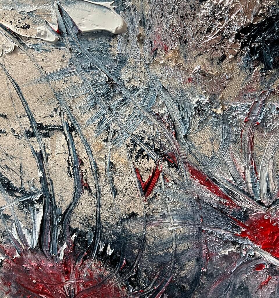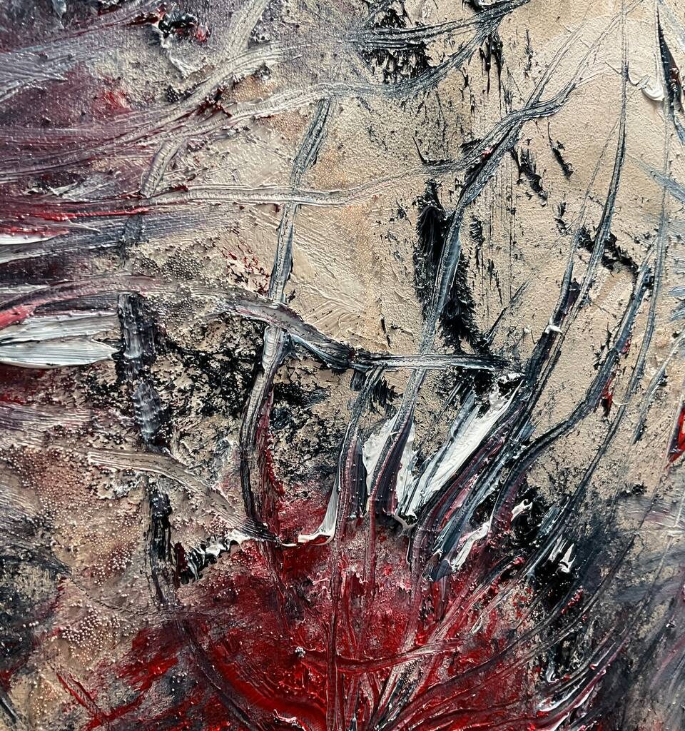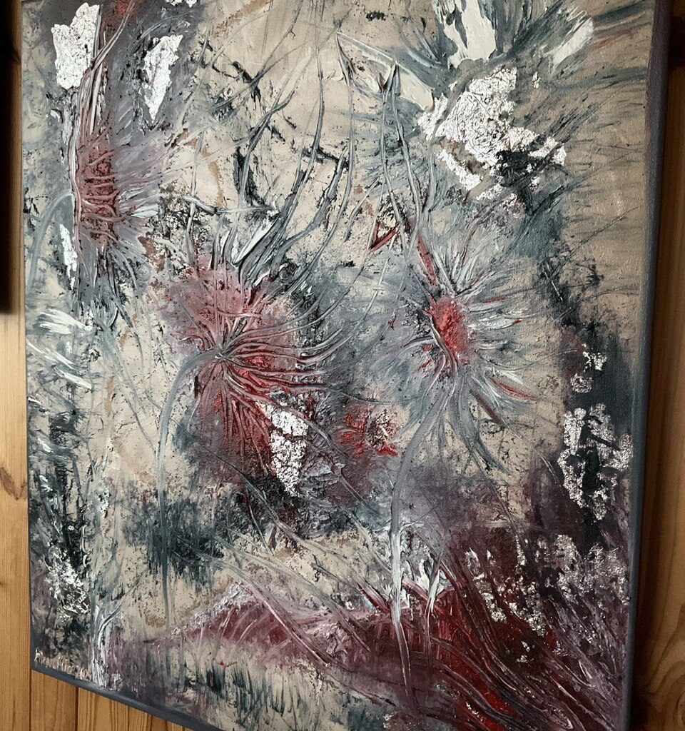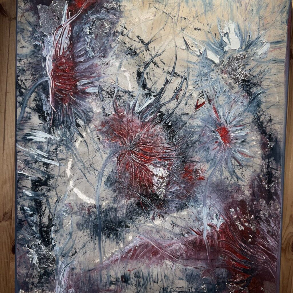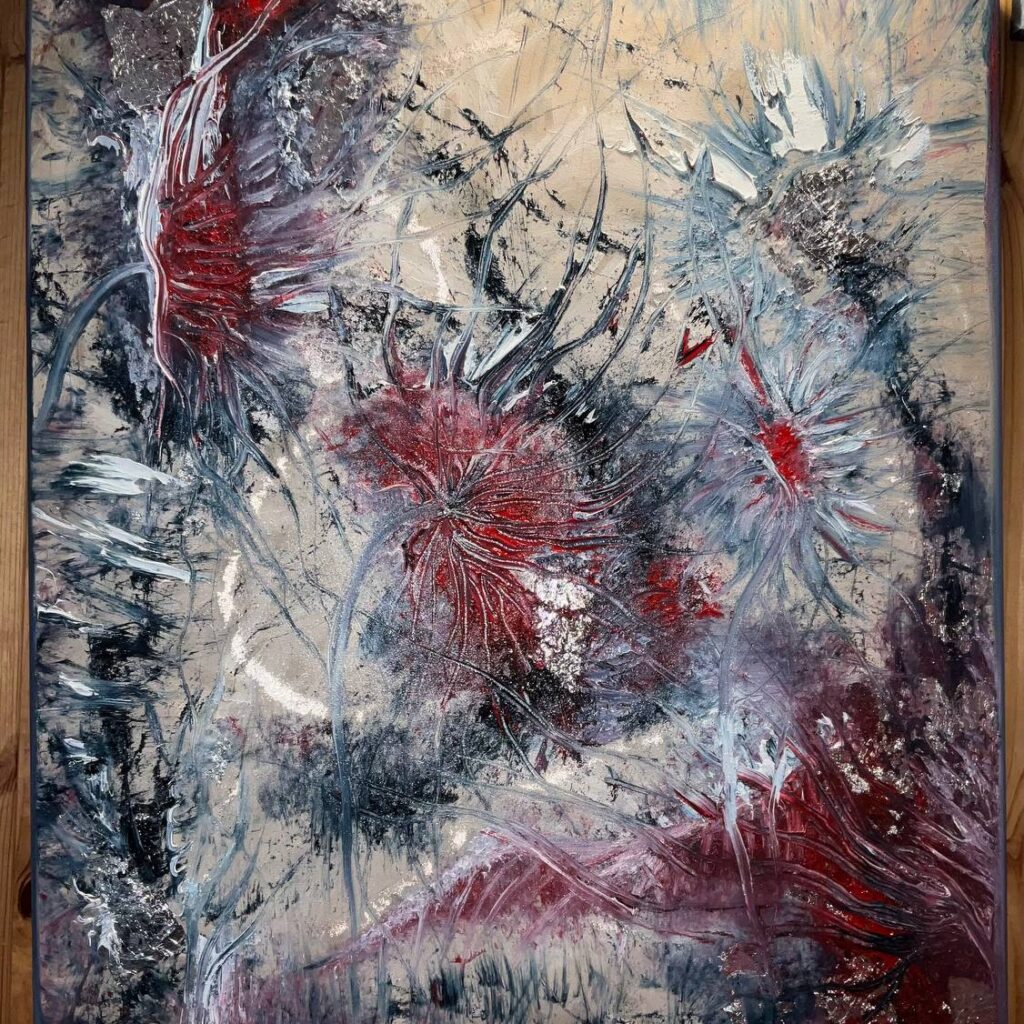 Красные цветы - хранители собственного сознания, их окружают тернии, но и горы; их окутывает неизвестность, но они поддерживают друг друга - соединяясь незримыми нитями.