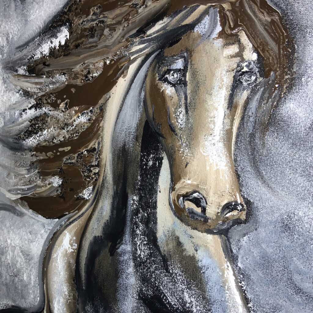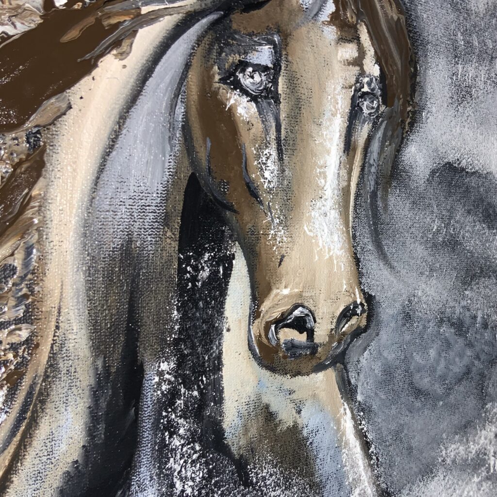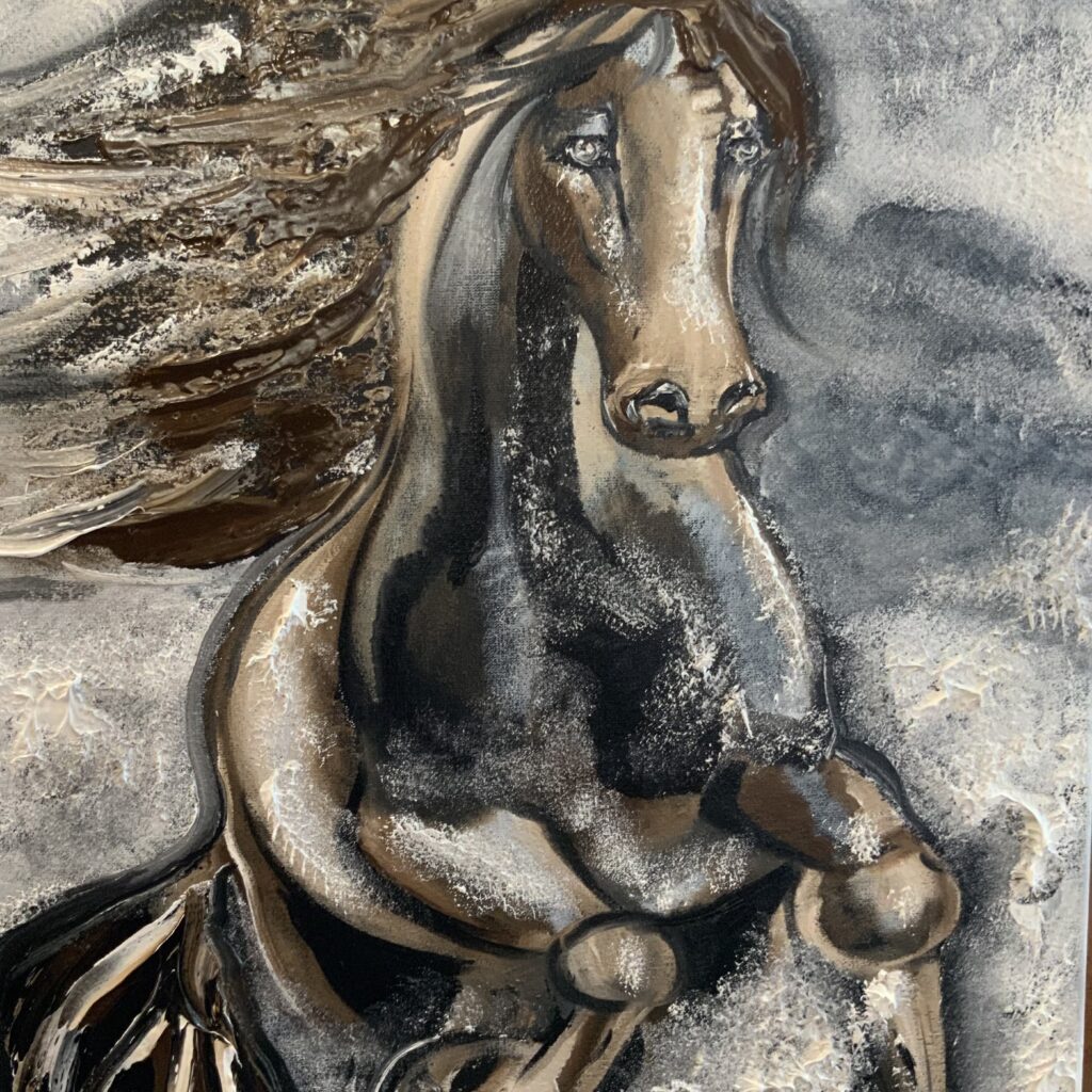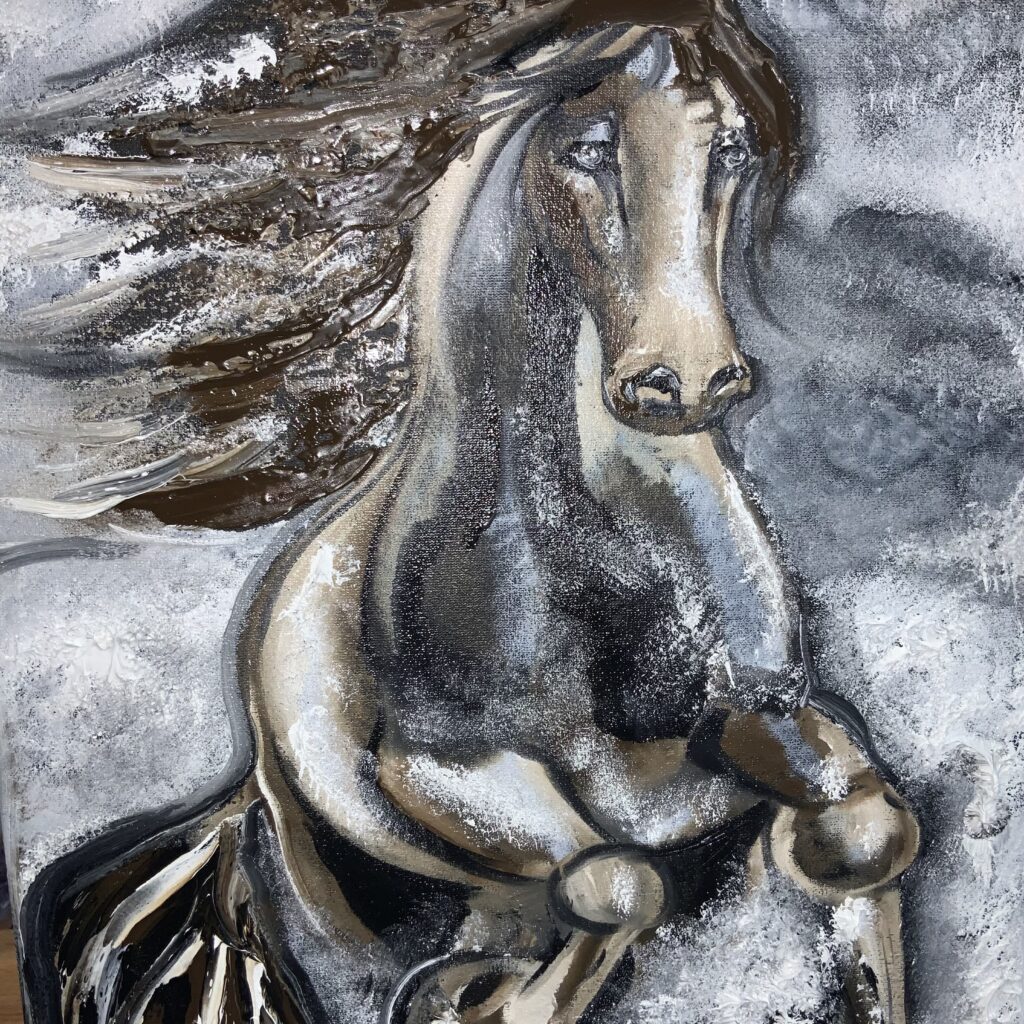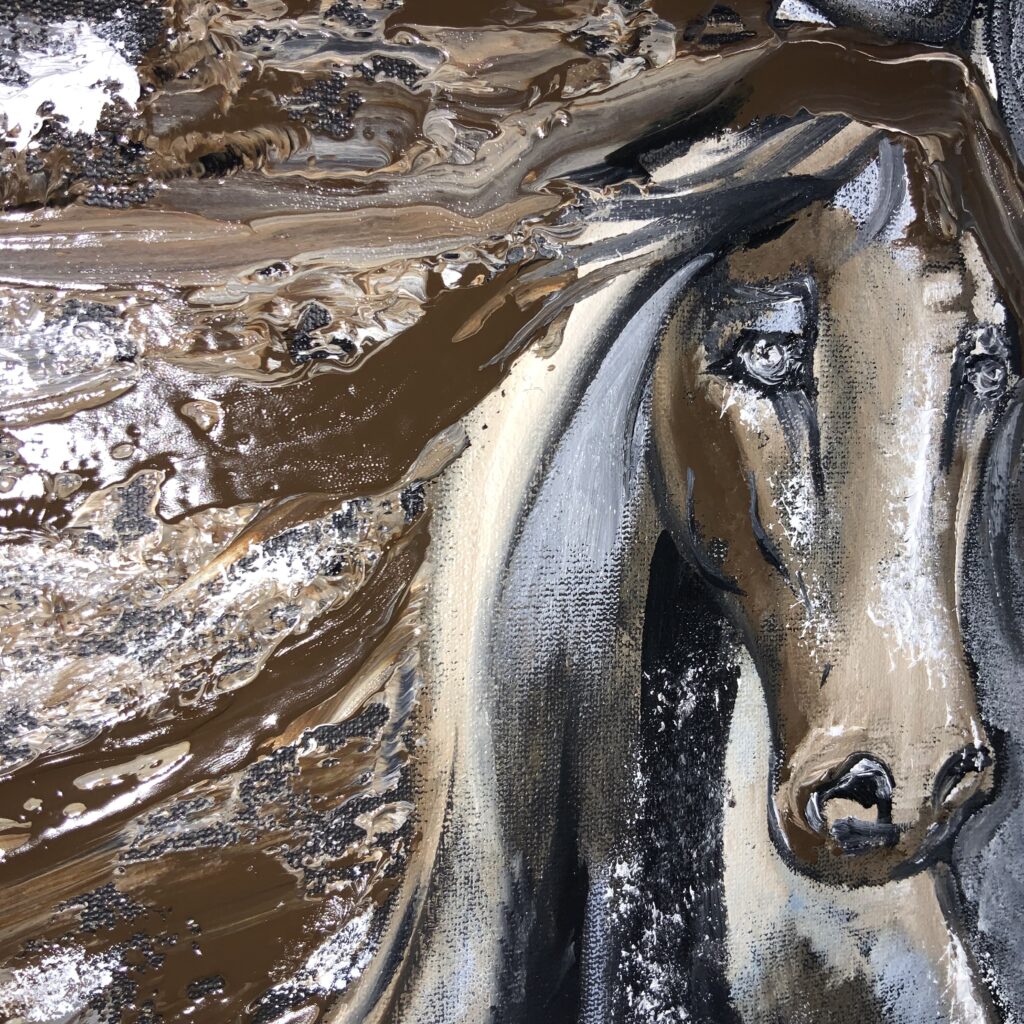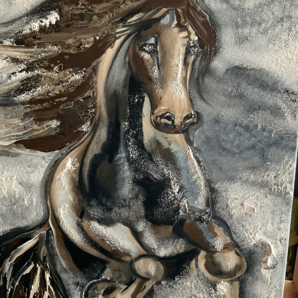 Хід коня - спокійний і захищає своєю багатоликою тишею, і лише удари потужних копит сили боротьби і протистояння негативу - руйнують цю гармонію ходу і наповнюють новою філософією руху до подолання перешкод зовнішнього характеру.