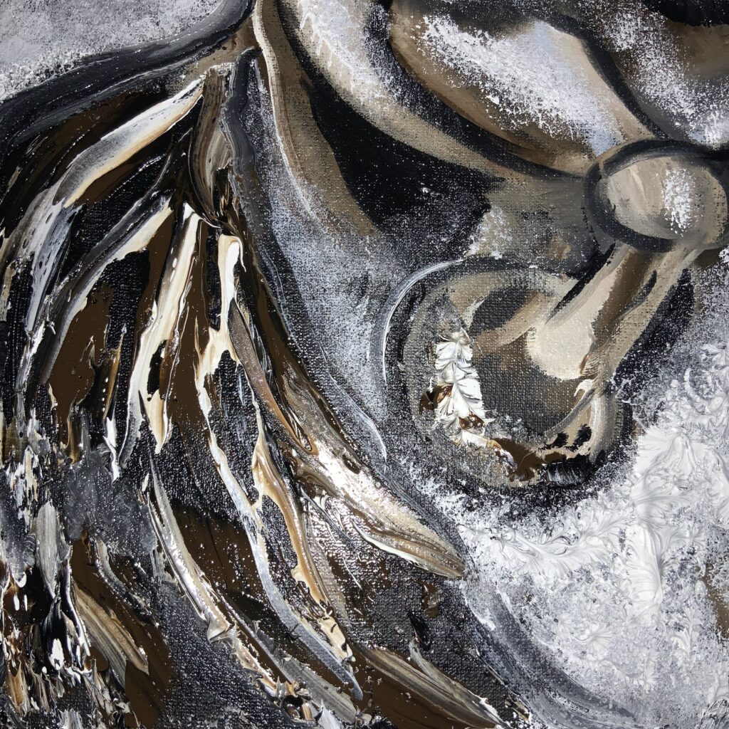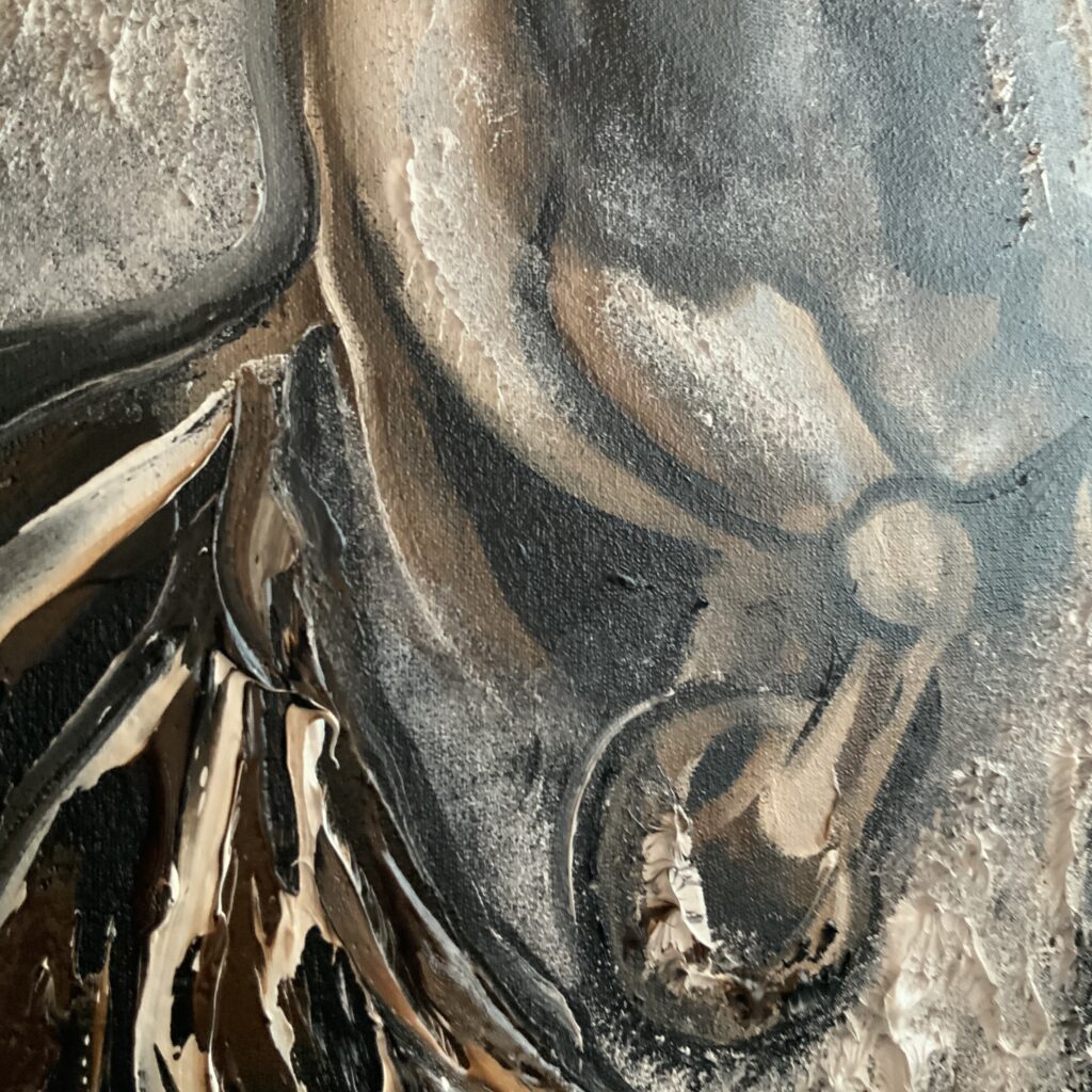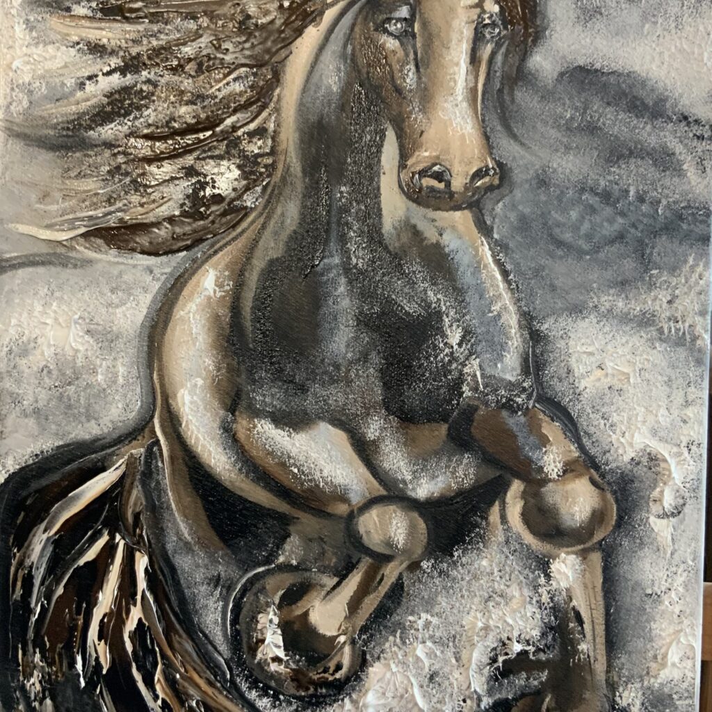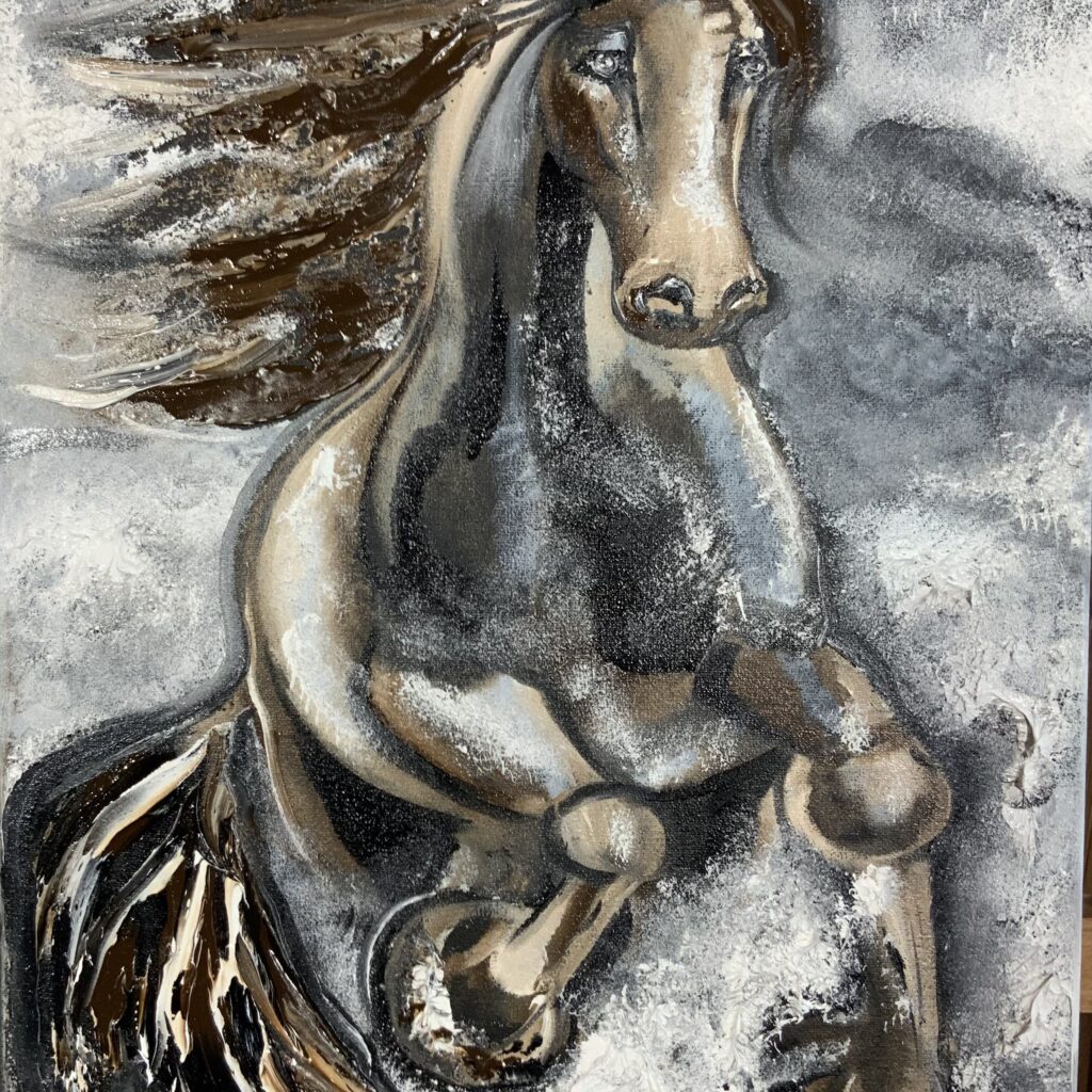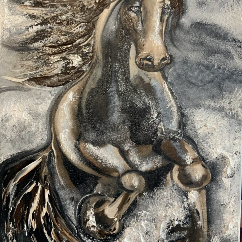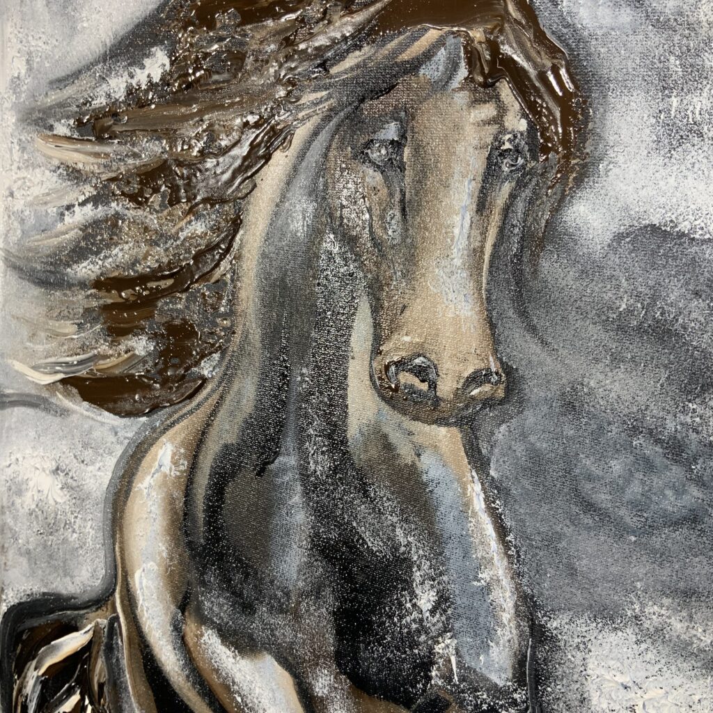 Хід коня - спокійний і захищає своєю багатоликою тишею, і лише удари потужних копит сили боротьби і протистояння негативу - руйнують цю гармонію ходу і наповнюють новою філософією руху до подолання перешкод зовнішнього характеру.